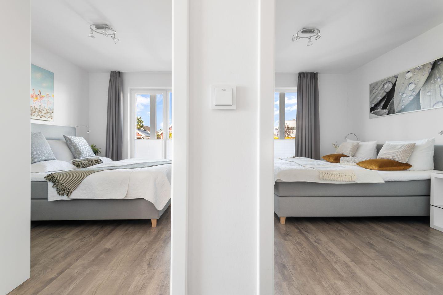 Eine Besonderheit des Ferienhauses ist es, dass beide Schlafzimmer mit großem Doppel- Boxspringbett Zugang zu einer zweiten Terrasse haben. Beide Schlafzimmer verfügen über einen eigenen Kleiderschrank, Nachttischchen und im Hauptschlafzimmer bietet ein zweiter TV zusätzliche Unterhaltung.