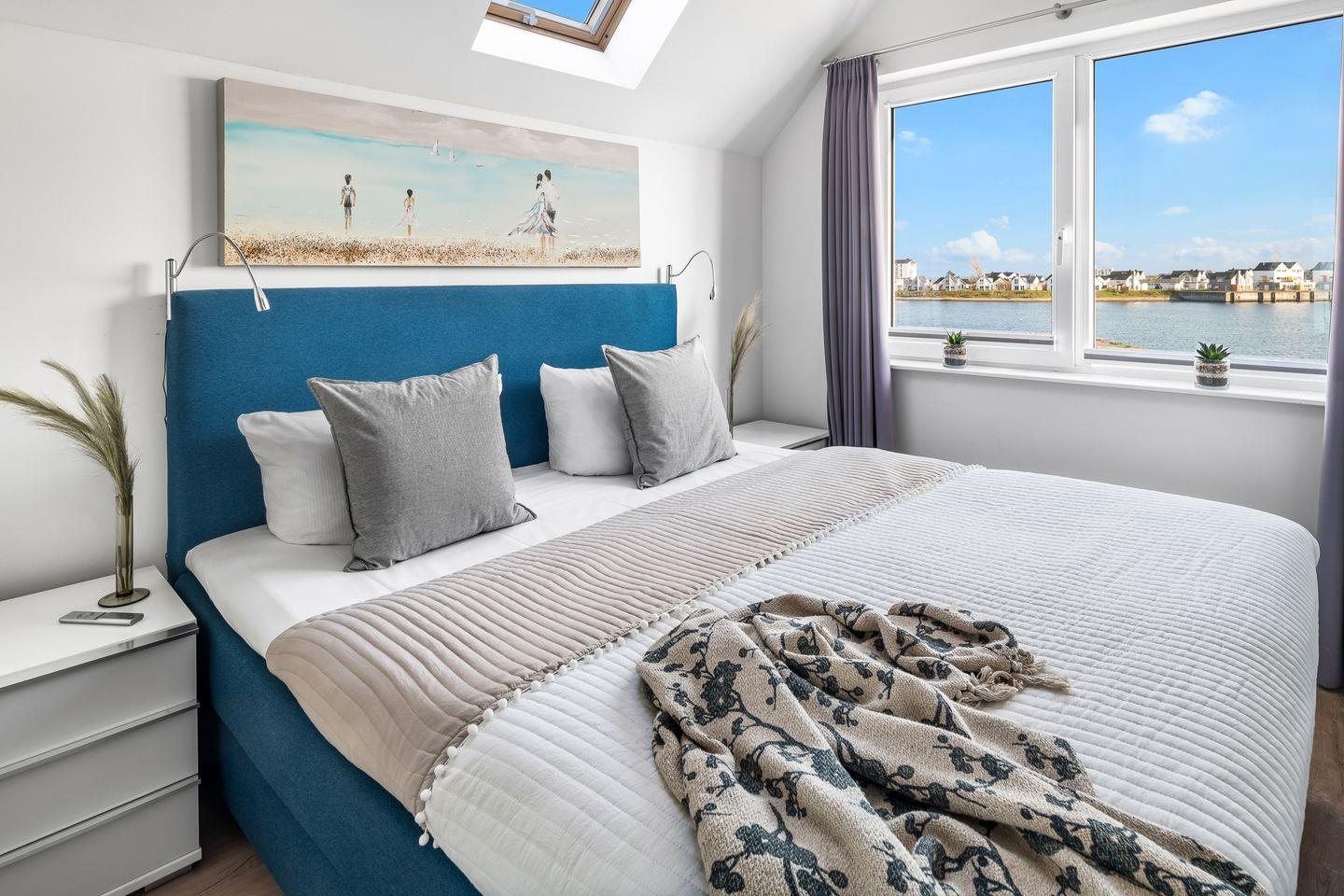 Luxusferienwohnung am Yachthafen mit Whirlwanne, Infrarotsauna und Traumblick auf die Schlei, den Yachthafen und die Ostsee.