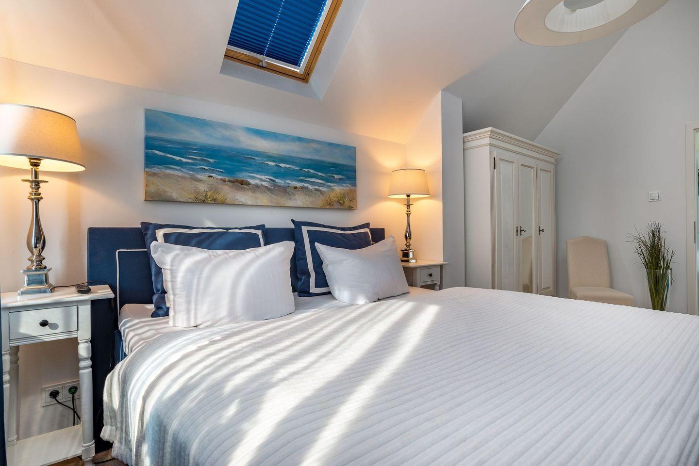 Die beiden Schlafzimmer verfügen über große Boxspringbetten. Sie wachen auf und blicken direkt auf das Wasser.