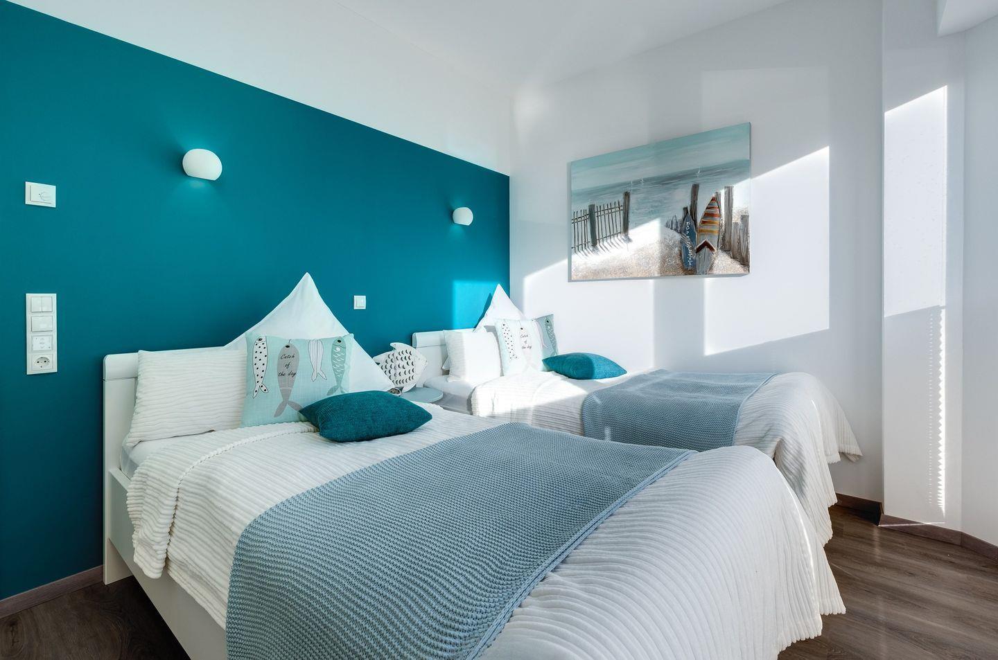 Drei stilvoll eingerichtete Schlafzimmer warten auf Sie: Zwei mit luxuriösen Boxspringbetten ausgestattet, während das dritte Schlafzimmer – ideal als Kinderzimmer – mit zwei Einzelbetten gemütliche Nächte verspricht. Genießen Sie die Annehmlichkeiten von zwei modernen Badezimmern, einer Sauna mit Farbwechseloption für jede Stimmung und einer Badewanne, die Ihnen einen traumhaften Blick auf die Ostsee ermöglicht.