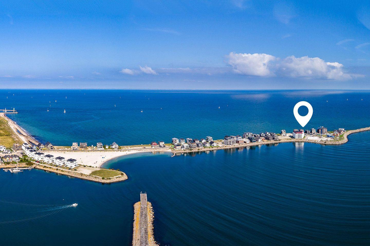 Die modern-maritime Einrichtung, ergänzt durch bodentiefe Fenster, helle Räume und einen Parkettfußboden mit Fußbodenheizung, schafft eine Atmosphäre der Gemütlichkeit und Eleganz. Der offene Küchen- und Essbereich lädt dazu ein, beim Kochen die freie Sicht auf die Ostsee zu genießen.