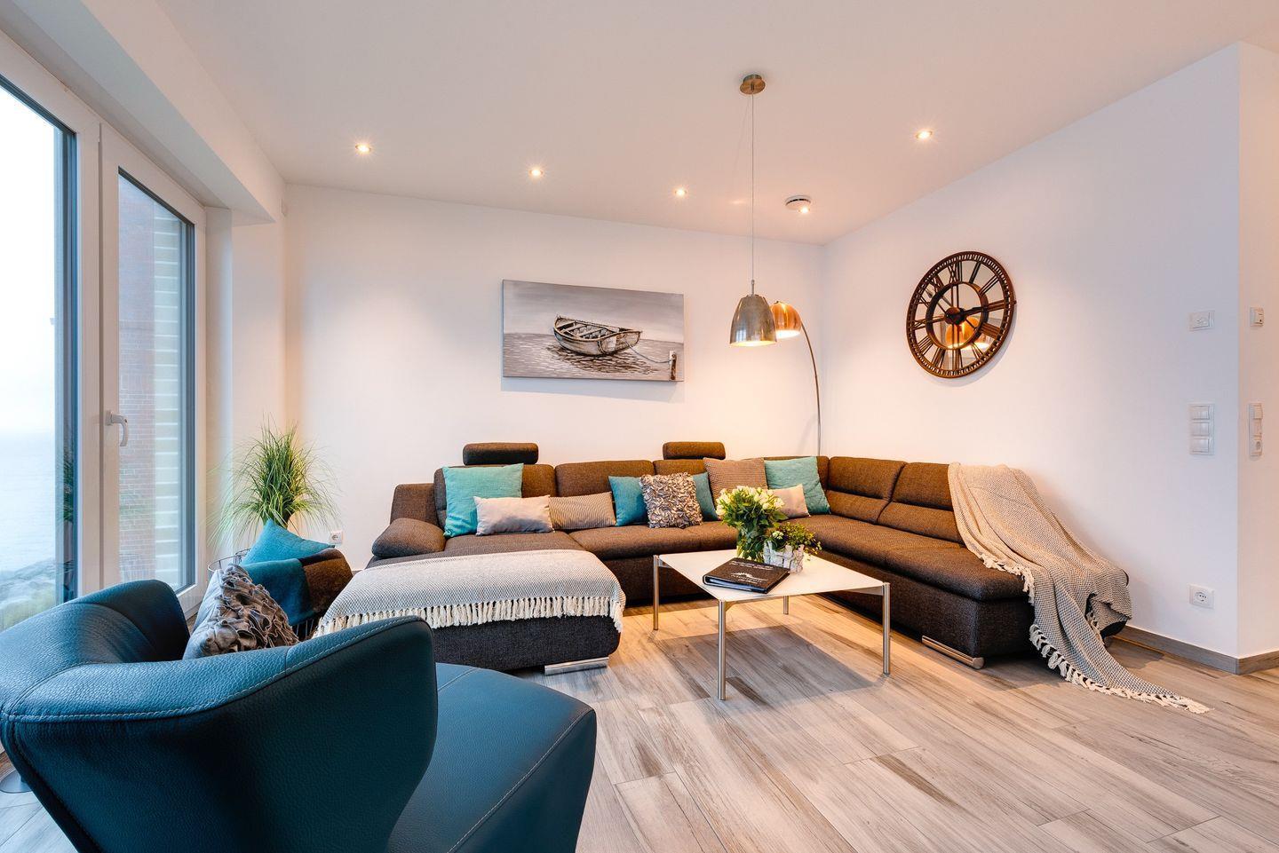 Ergänzt wird Ihr Wohlfühlerlebnis durch einen großzügigen Wohnbereich mit Panoramafenstern, hochwertigen Polstermöbeln, einem Kamin für gemütliche Abende, Smart-TVs und einer hochmodernen technischen Ausstattung, einschließlich einer Raumluftanlage. Zudem wird das gesamte Haus durch regenerative Energie betrieben – ein Plus für umweltbewusste Gäste.