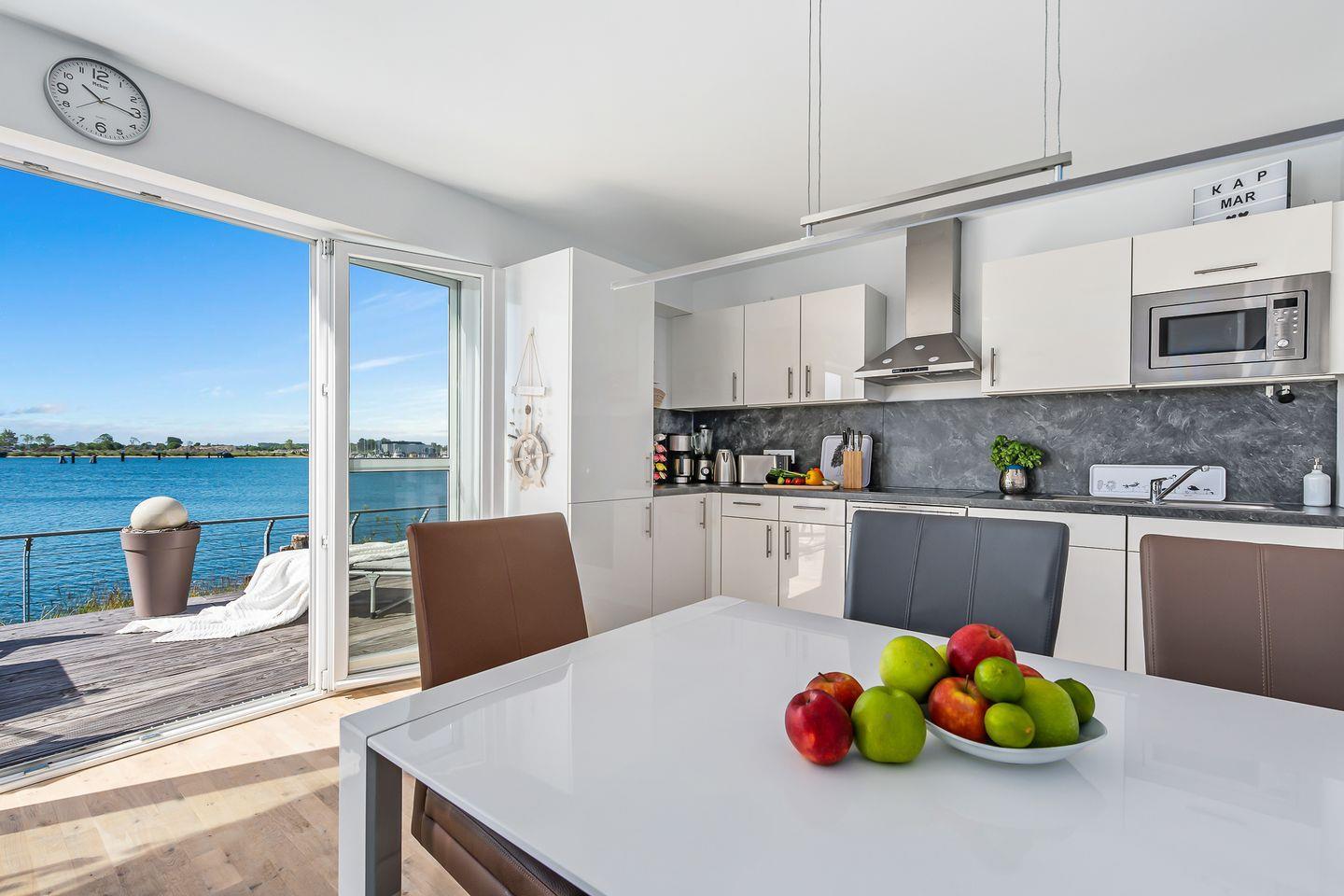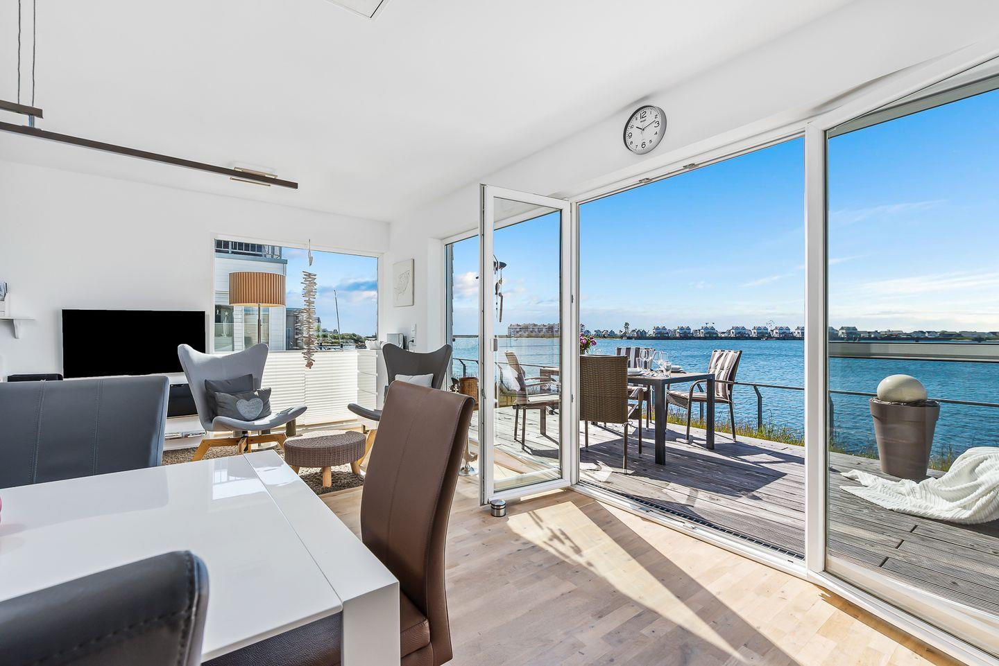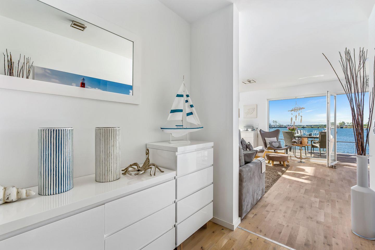 Die liebevoll eingerichtete Ferienwohnung "KapMar" mit 2 Schlafzimmern befindet sich in unmittelbarer Wasserlage am Kaianleger des neuen Ostseeresorts Olpenitz, dem wohl schönsten Platz an der Ostsee. Die Häuser stehen auf Stelzen direkt im Hafenbecken. Umgeben von Wasser bietet Ihnen die hochwertig ausgestattete Wohnung einen großzügigen und lichtdurchfluteten Wohn-/Essbereich. Aufgrund der unverbauten Lage und der bodentiefen Fenster genießen Sie ein einmaliges Panorama mit Blick über die Ostsee, den Hafen von Olpenitz und die Schlei.