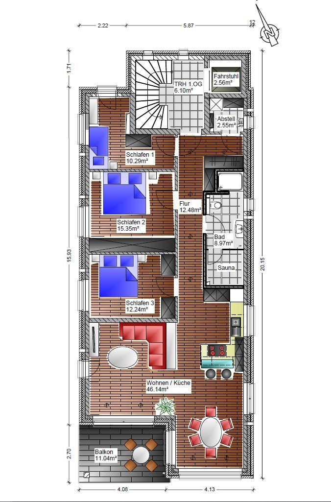 Auf dem großen Südbalkon warten bequeme Bestuhlung und zwei hochwertige gepolsterte Sonnenliegen auf unsere Gäste.