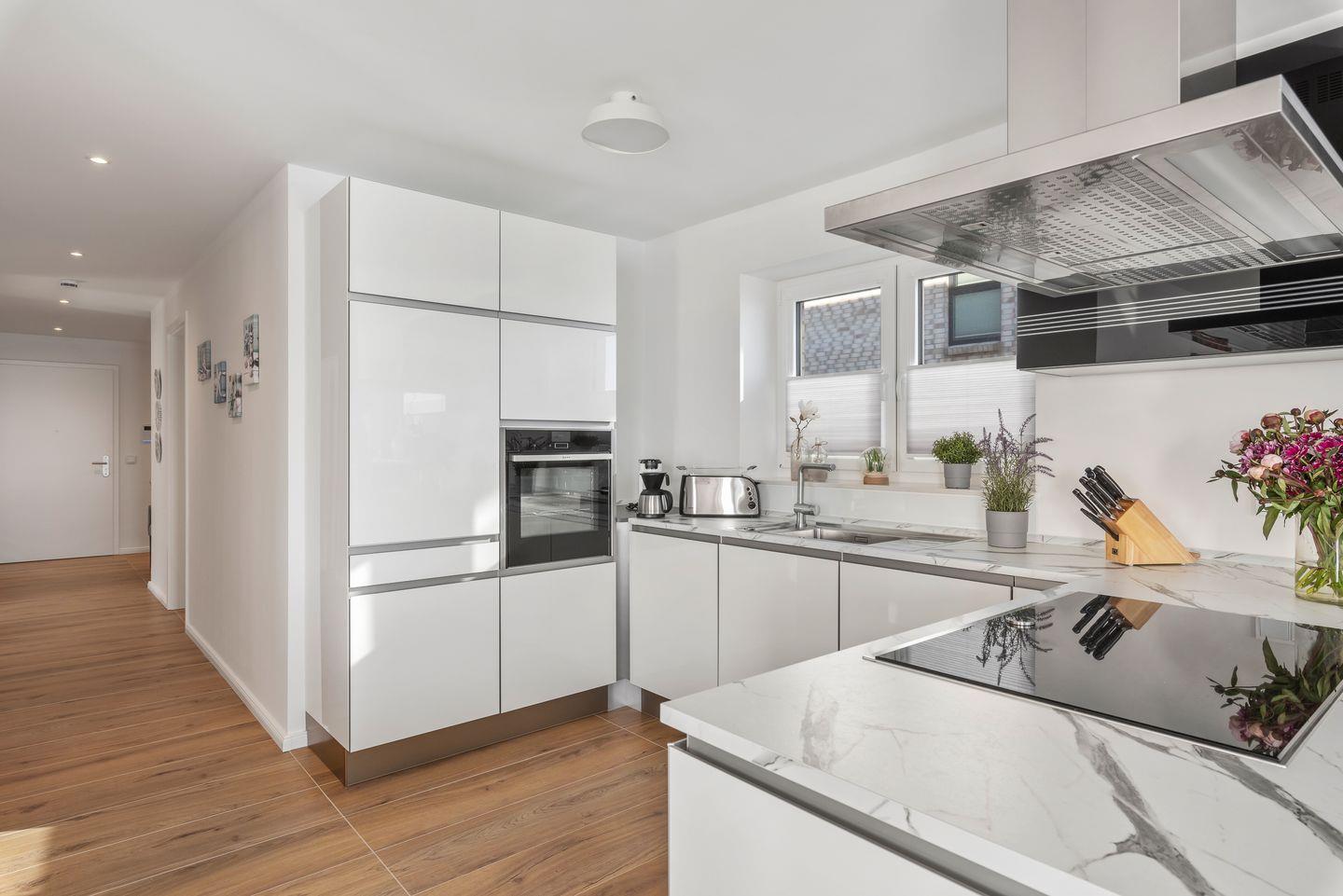 Die integrierte hochwertige Küche garantiert auch beim Kochen einen Blick auf das Wasser. Diese liebevoll ausgestattete Küche lässt das Herz eines jeden Hobbykochs höherschlagen.