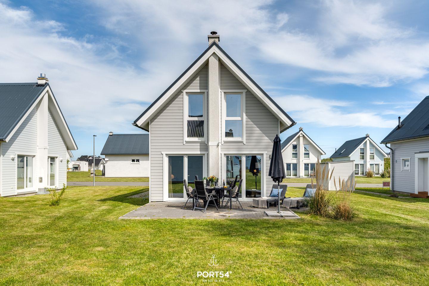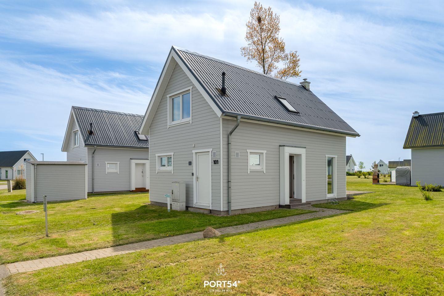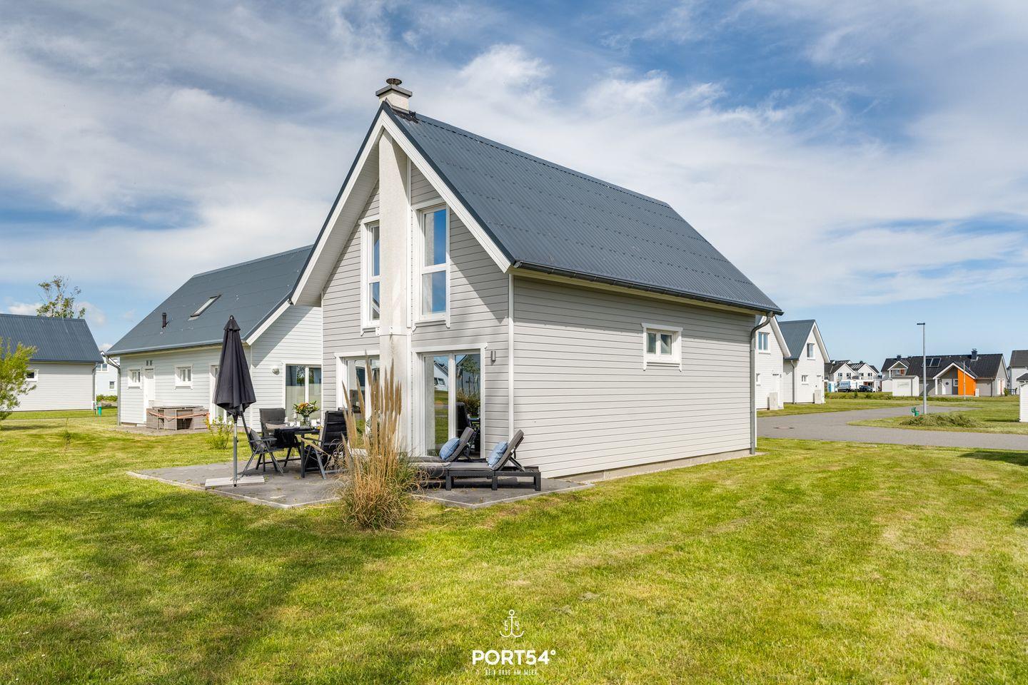 Das Ferienhaus bietet auf 80m² einen offenen Wohn- und Essbereich mit Kamin, einer voll ausgestatteten Küche, zwei Schlafzimmer, zwei Badezimmer und eine Terrasse. Das eine Schlafzimmer bietet ein Doppelbett und das andere Schlafzimmer zwei Einzelbetten. Die Bäder bieten eine Dusche und eine Badewanne sowie eine Infrarot-Sauna. Auf der Terrasse gibt es Gartenmöbel, Sonnenliegen, einen Sonnenschirm und einen Holzkohlegrill. Ein Außenstellplatz und ein Fahrradschuppen sind vor dem Haus vorhanden.