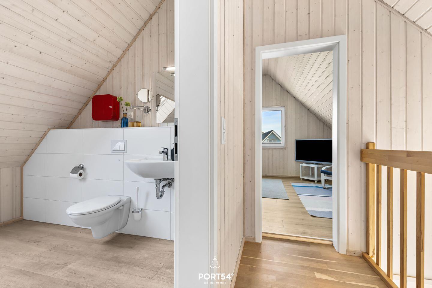 Willkommen in Ihrem Feriendomizil "Hygge Hus" in Olpenitz. Das freistehende, 98m² große Haus verfügt über einen offenen Wohn- und Essbereich, eine Küche, drei Schlafzimmer und zwei Bäder. Das Haus besticht durch seine Lage im Grünen und der unmittelbaren Nähe zur Ostsee. Im Erdgeschoss des Hauses liegen zwei der insgesamt drei Schlafzimmer sowie der große, loftartig angelegte Wohn- und Essbereich. Die hohen Decken und die großen Panoramafenster sorgen für besonders viel Lichteinfall und ein herrlich großzügiges Wohngefühl. Nach langen Strandspaziergängen können Sie auf dem gemütlichen Sofa vor dem Kamin entspannen, ein gutes Buch lesen oder Ihre Lieblingsserie auf dem Flachbild-TV schauen. Das Sofa verfügt über eine Schlaffunktion (155x200cm) und bietet Platz für zwei Kinder. Die voll ausgestattete, modern eingerichtete Küche bietet alles, was Sie für einen geselligen Kochabend mit der Familie benötigen. Das Bad verfügt über ein Fenster mit Sichtschutz, eine Handtuchheizung, Badewanne und als Highlight, über eine Infrarot-Sauna. Hier können Sie sich nach langen Strandspaziergängen aufwärmen und entspannen. Eines der beiden Schlafzimmer im Erdgeschoss verfügt über einen Schrank sowie ein gemütlichen Doppelbett (180x200cm). Das zweite ist ebenfalls mit einem Schrank und zwei Einzelbetten (je 90x200cm) ausgestattet. Ein weiteres Schlafzimmer befindet sich im Obergeschoss, mit einem Doppelbett (180x200cm), Schrank sowie einem Smart-TV. Alle Schlafzimmer sind mit Verdunkelungsmöglichkeiten und Insektenschutzgittern ausgestattet. Zusätzlich wurde eine Trittschalldämmung verbaut, so dass einem erholsamen Schlaf nichts mehr im Wege steht. Zudem befindet sich im Obergeschoss ein zweites Bad mit Fenster und Sichtschutz, Dusche und Föhn. An sonnigen Tagen können Sie es sich auf der möblierten, südwestlich ausgerichteten Terrasse gemütlich machen. Hier können Sie ihre Urlaubstage genießen und an lauen Sommerabenden mit der Familie die Tage ausklingen lassen. Einem Grillabend steht auch nichts im Wege. Für die Kleinen stehen ein Kinderhochstuhl und Babybett bereit. Für Ihre PKW's stehen vor dem Haus zwei Parkplätze zur Verfügung. Das Haus ist für 6 Erwachsene und 2 Kinder ausgestattet.