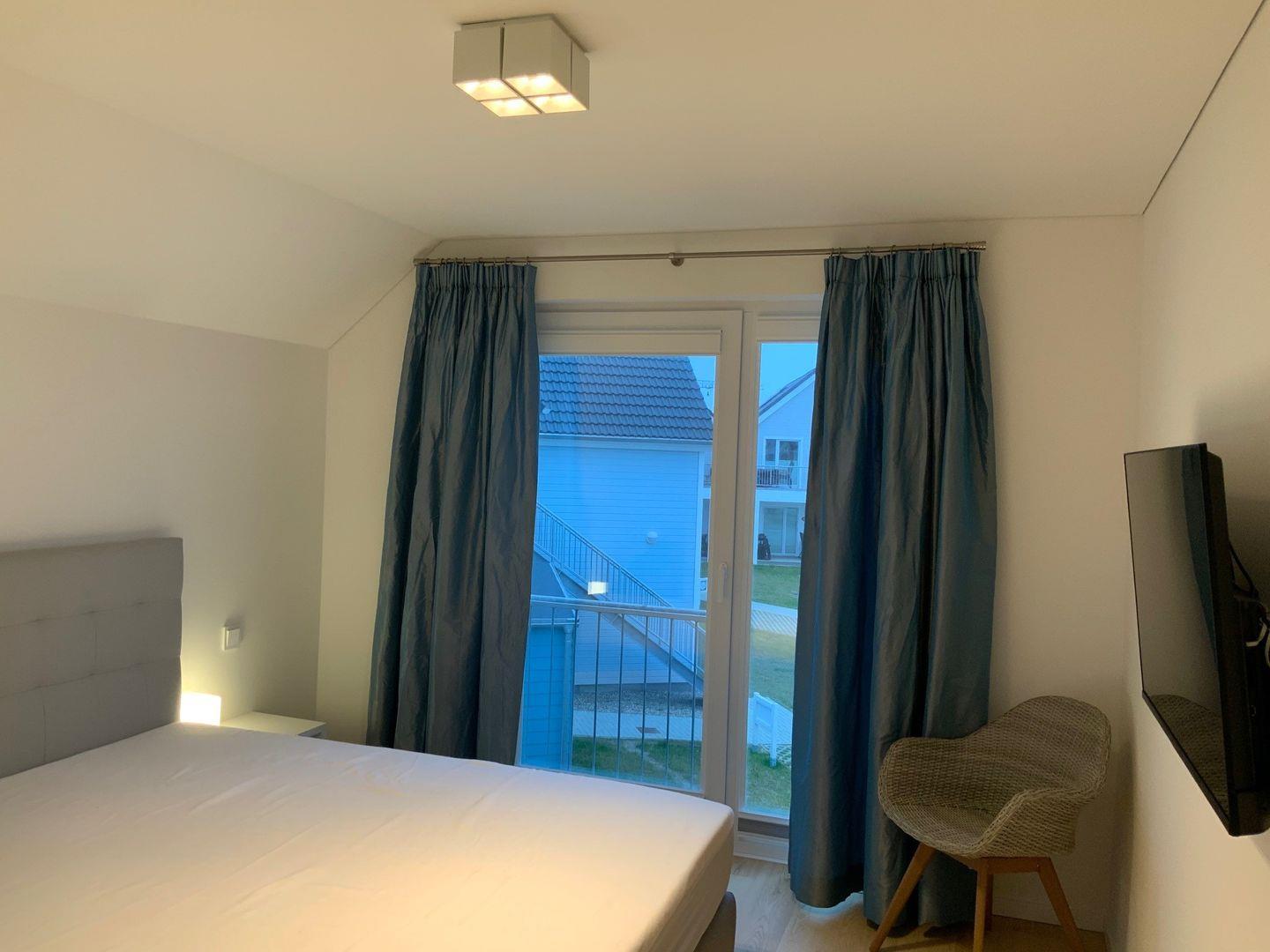 Die Wohnung für 4 Personen verfügt über einen Wohnbereich mit Kaminofen, eine vollausgestattete Küche, zwei Schlafzimmer und ein Tageslicht-Duschbad mit Infrarot-Sauna. Der Süd-Balkon bietet Ihnen Gartenmöbel und einen Elektro-Grill. Die Schlafzimmer sind mit einem Doppelbett und zwei Einzelbetten ausgestattet. Am Haus befindet sich ein PKW-Stellplatz. Bitte beachten Sie, dass das OstseeResort Olpenitz derzeit noch im Aufbau ist und es zu Bautätigkeiten in der Nähe Ihrer Unterkunft kommen kann.