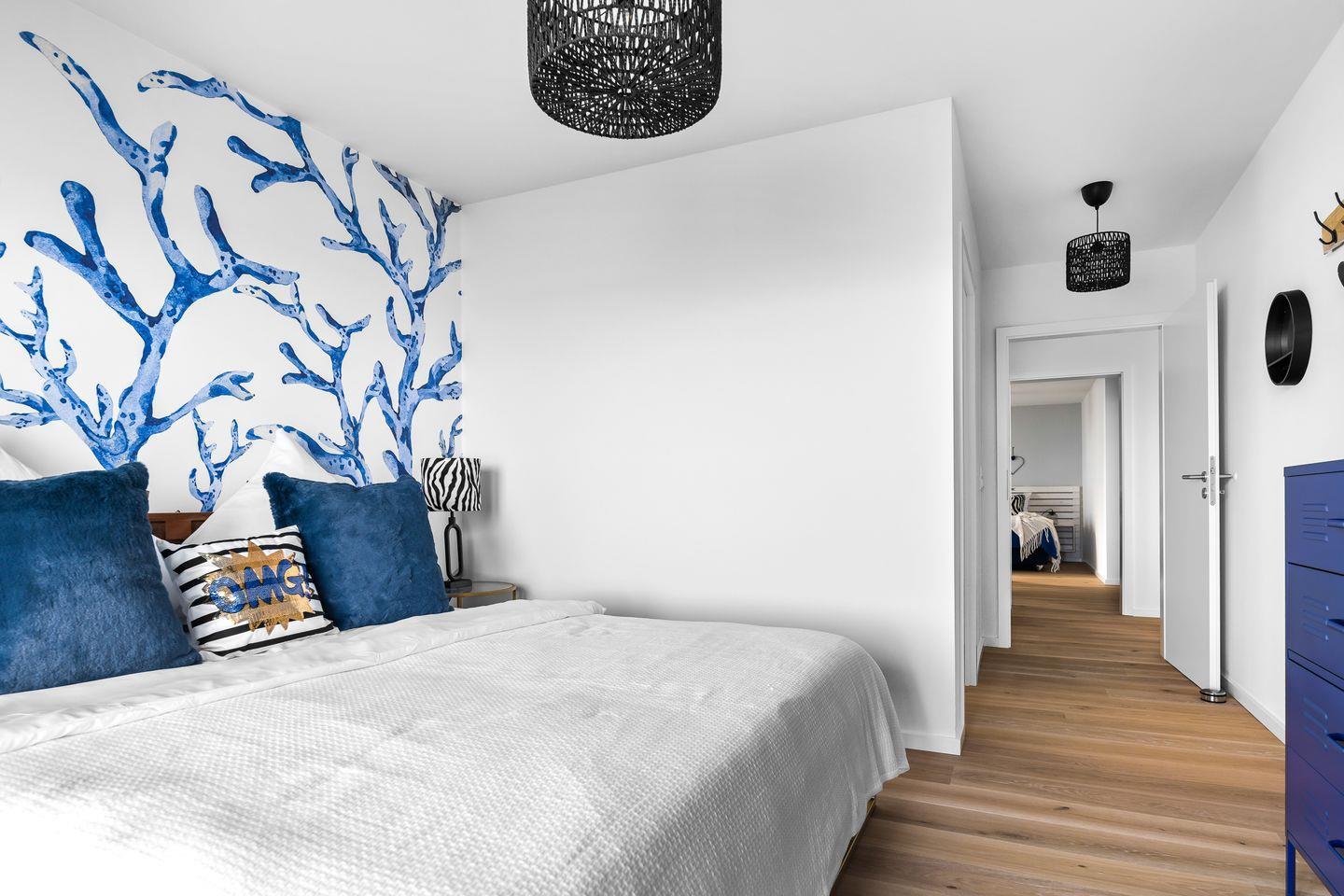 Schlafen Sie wie auf Wolken in den zwei charmanten Schlafzimmern. Das Master-Schlafzimmer lockt mit einem Doppelbett und direktem Meerblick, während das zweite Schlafzimmer mit zwei Einzelbetten auf Rollen flexibel bleibt. Beide sind mit Smart-TVs und eigenen Bädern ausgestattet, damit Ihr Komfort keine Grenzen kennt. So steht einem gemütlichen Ostseeurlaub mit Freunden und Familie nichts im Weg.