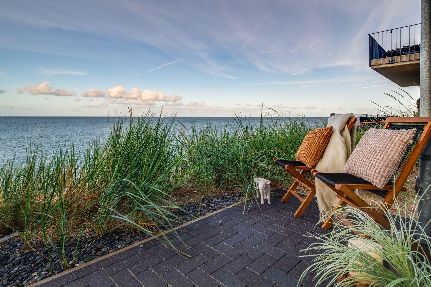 Die Terrasse der Wohnung, direkt an der Ostsee, ist der perfekte Ort, um zu relaxen und die maritime Atmosphäre aufzusaugen. Nur wenige Schritte trennen Sie vom Olpenitz Strand – ideal für spontane Strandspaziergänge oder einen Sprung ins kalte Wasser nach der Sauna.