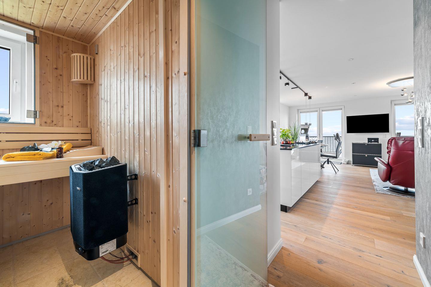 Genieße die exklusive Penthaus-Wohnung "Sea Point", im Ostseeresort Olpenitz, mit 115qm und freiem Blick auf die Ostsee. Ideal für bis zu 5 Personen, mit Aufzug und einer großen Dachterrasse. Entspanne in luxuriösen Boxspringbetten, koche in einer Profiküche und genießen den Meerblick durch bodentiefe Fenster. Das Apartment bietet hochwertige Technik inklusive Sauna und smarten TVs. Nur wenige Schritte von der Olpenitz Badebucht entfernt, mit privatem Parkplatz und Elektroauto-Lademöglichkeit.