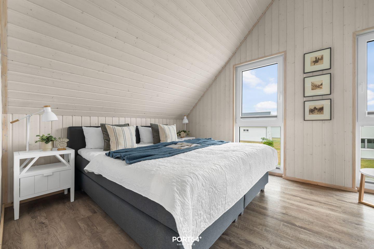 Willkommen im Ferienhaus "Strandweh" in Olpenitz. Machen Sie Urlaub an der Ostsee. Ihr Ferienhaus bietet auf 80m² einen offenen Wohn- und Essbereich mit Küche, zwei Schlafzimmer, zwei Badezimmer und eine Terrasse. Das Haus besticht durch seine Lage im Grünen und der unmittelbaren Nähe zur Ostsee. Entspannen Sie auf dem Sofa oder schauen Sie Ihre Lieblingsserie auf dem Flachbild-TV. An kühlen Abenden strahlt der Kamin im Wohnbereich eine wohlige Wärme aus. In der vollausgestatteten Küche lassen sich leckere Gerichte zaubern. Für unsere kleinen Gäste steht ein Kinderhochstuhl zur Verfügung. Eines der beiden Schlafzimmer bietet einen Schrank und ein gemütliches Boxspring-Doppelbettbett (180x200cm), das zweite Schlafzimmer hält ebenfalls einen Schrank, eine Kommode sowie zwei Boxspring-Einzelbetten (je 90x200cm) bereit. Damit einem erholsamen Schlaf nichts im Wege steht, sind beide Schlafzimmer mit Verdunkelungsmöglichkeiten und Insektenschutz ausgestattet. Das Bad im Obergeschoss ist mit einem Dachfenster mit Sichtschutz, einem Handtuchheizkörper, einem WC sowie einer Badewanne ausgestattet. Ein weiteres Bad im Erdgeschoss bietet ein Fenster mit Sichtschutz, ein WC, einen Föhn, eine Dusche und als Highlight, eine Infrarot-Sauna. Hier können Sie sich nach langen Strandspaziergängen aufwärmen und entspannen. Die Terrasse bietet neben Gartenmöbeln einen Sonnenschirm, sowie einen Holzkohlegrill. Veranstalten Sie gemütliche Grillabende oder lassen Sie einfach im Strandkorb die Seele baumeln. Da die Terrasse mit einem Windschutz ausgestattet ist, können Sie die frische Ostseeluft auch bei einer "steifen Brise" genießen. Zwei Außenstellplätze stehen für Ihre PKWs zur Verfügung.