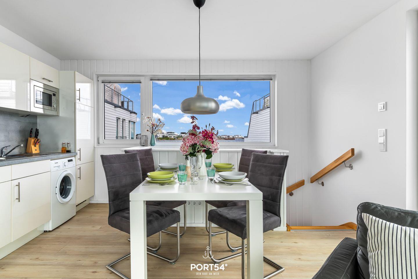 Erleben Sie unvergessliche Urlaubstage auf dem Wasser in unserem exklusiven schwimmenden Ferienhaus "Baltic Home". Dieses besondere Ferienhaus bietet viel Komfort und eine erholsame Atmosphäre direkt auf der Ostsee. Es verfügt über zwei Schlafzimmer, die sich im Erdgeschoss befinden. Das eine Schlafzimmer verfügt über ein gemütliches King-Size Doppelbett (200x200cm), Verdunkelungsmöglichkeiten für erholsame Nächte, einen Kleiderschrank und einem Zugang zur Terrasse. Hier starten Sie mit einem wunderbaren Ausblick die Marina in den Tag. Das zweite Schlafzimmer ist mit zwei komfortablen Einzelbetten (je 100x200cm), einer Kommode und ebenfalls Verdunkelungsmöglichkeiten ausgestattet. Zudem verfügt das Ferienhaus über eine finnische Sauna, in der Sie nach einem langen Tag hervorragend entspannen können. Gegenüber befindet sich ein modernes Badezimmer mit Dusche. Im Obergeschoss ist der Wohn- und Essbereich mit der Küche untergebracht. Die Küchenzeile ist voll ausgestattet mit modernen Geräten und ideal für kulinarische Abende. Der stilvoll eingerichtete Wohnbereich lädt mit einem Smart TV zu entspannten Stunden ein. Dort befindet sich ebenfalls ein Sofa mit Schlaffunktion. Angrenzend befindet sich der Balkon. Genießen Sie die Abendstunden auf den gemütlichen Gartenmöbeln oder verbringen Sie einen tollen Grillabend. Highlight des Hauses ist die Dachterrasse mit spektakulärem Rundum-Wasserblick. Es erwartet Sie ein unvergesslicher Ausblick auf die Schlei, die Schleimündung, die Ostsee und das Hafenbecken des OstseeResorts Olpenitz - perfekt um Sonnenuntergänge und den Sternenhimmel zu bewundern Ein eigener Parkplatz direkt vor dem Steg steht Ihnen ebenfalls zur Verfügung.