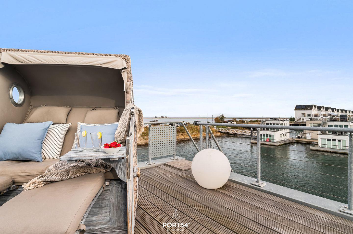 Sea Lounge- Dachterrasse mit Panoramablick, Strandkorb, schwimmendes Haus, Sauna