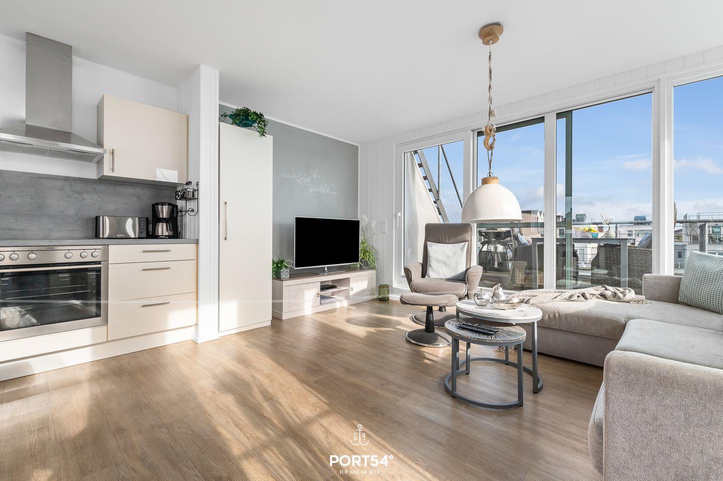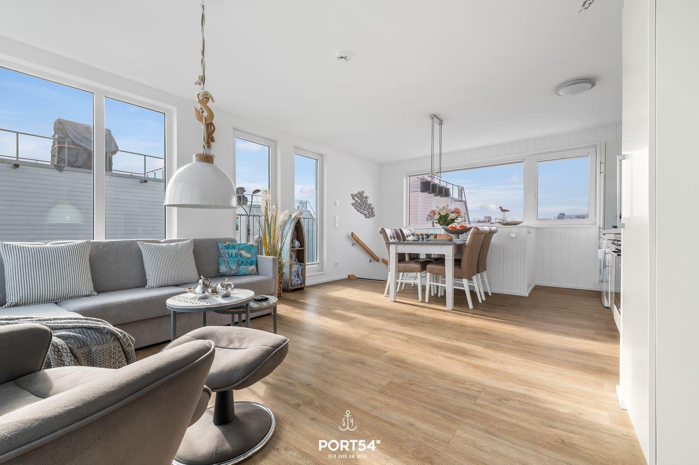 Die Ferienwohnung "Sea Lounge" im Ostseeresort Olpenitz bietet zwei stilvolle Schlafzimmer, einen offenen Wohn- und Essbereich mit Wasserblick, eine großzügige Panorama-Dachterrasse und eine private finnische Sauna. In direkter Nähe zu den Stränden der Ostsee gelegen, ist sie der ideale Ort für einen luxuriösen und entspannten Urlaub am Meer.
