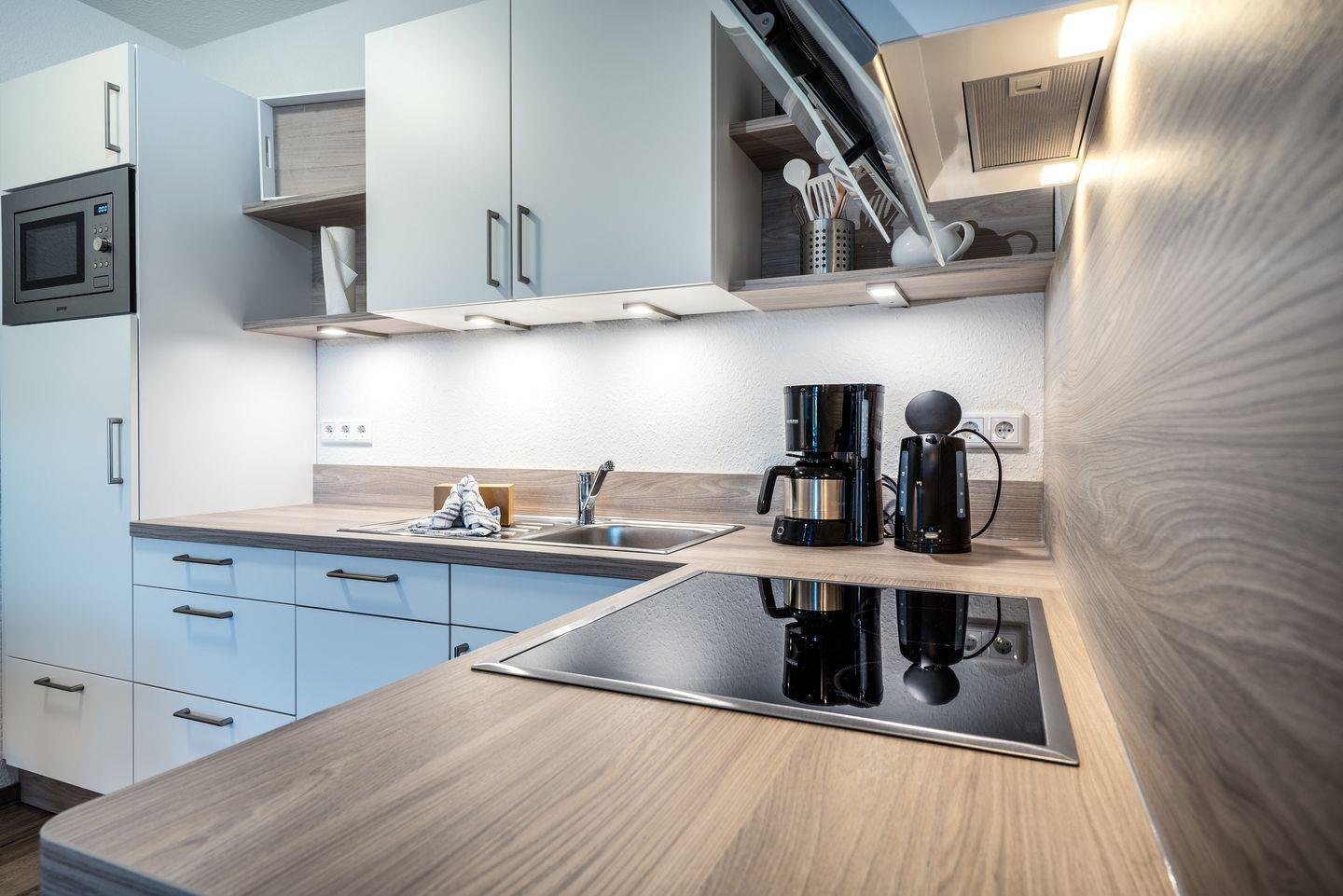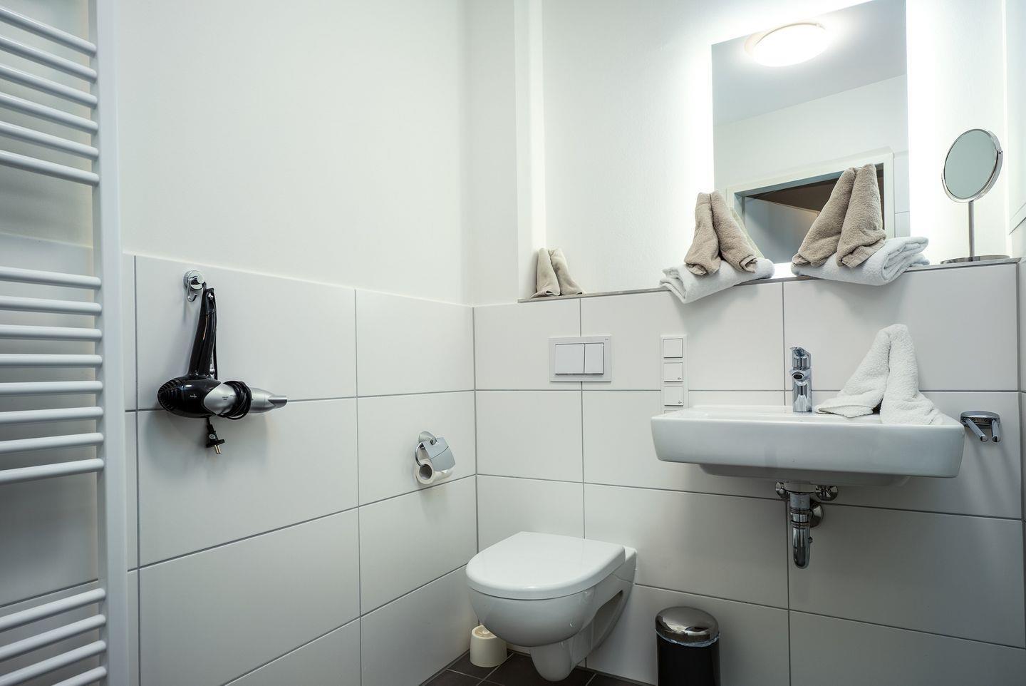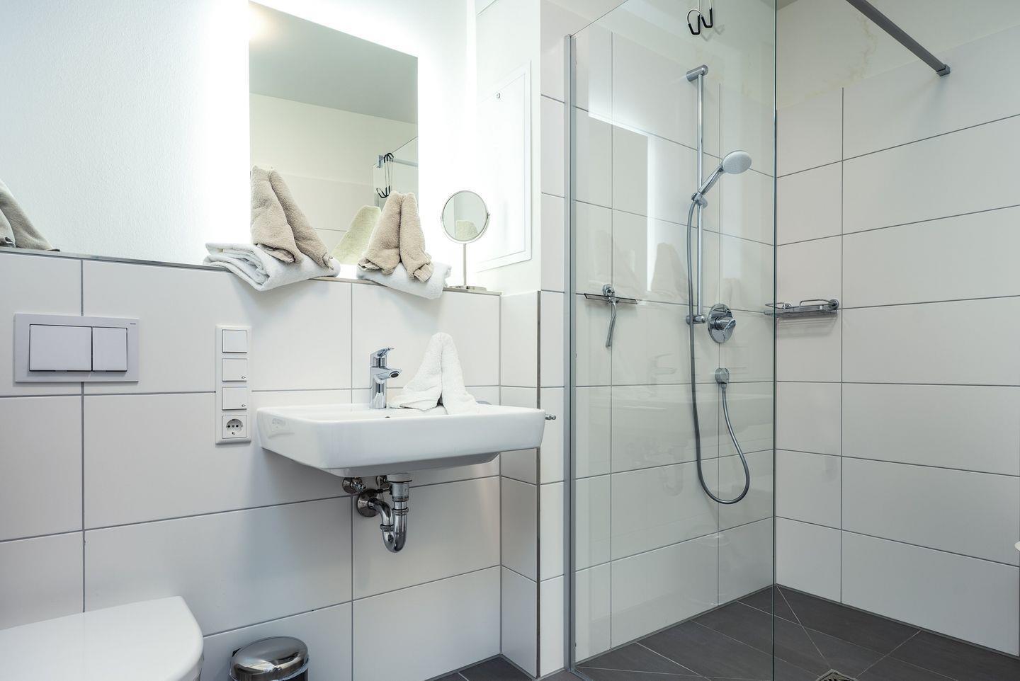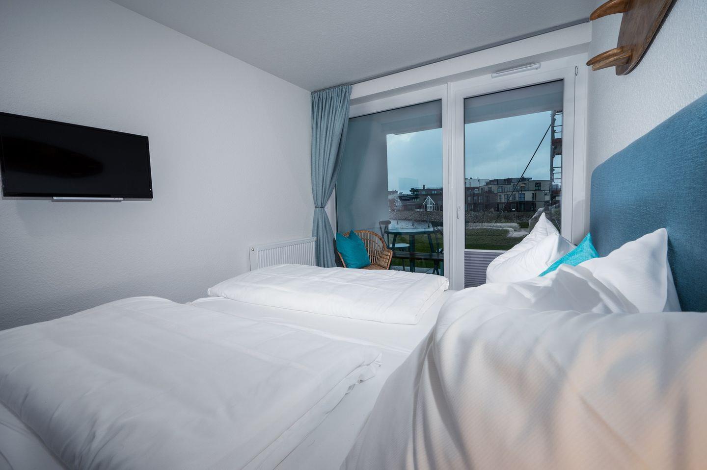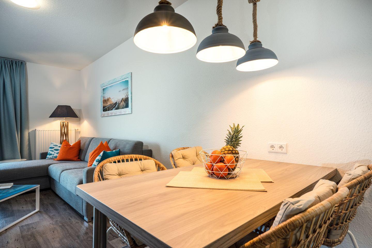 Willkommen in der Ferienwohnung "Meereskieker"! Diese gemütliche Wohnung befindet sich im Erdgeschoss und bietet auf 59m² ausreichend Platz für bis zu 4 Personen. Am Ende einer Sackgasse direkt an der Ostsee gelegen, erwartet Sie hier absolute Idylle und eine fantastische Aussicht. Der Wohnbereich ist mit einem gemütlichen Sofa ausgestattet und ein Flachbild-TV sowie ein Blu-ray Player ermöglichen entspannte Filmeabende. Direkt angrenzend finden Sie die offene Küchenzeile mit Essbereich. Die Küche ist mit Eierkocher, Toaster und vielem mehr hervorragend ausgerüstet für die Zubereitung eines köstlichen Frühstücks oder Abendessens. Vom Wohnbereich aus gelangen Sie auf die überdachte Terrasse mit Blick auf einen Teil des Hafenbeckens und den Privatstrand des Resorts. Hier können Sie bei Meeresrauschen den Tag genießen. Das Schlafzimmer bietet ein bequemes Doppelbett (180x200cm), in dem Sie erholsam schlafen können. Das Zimmer ist zusätzlich mit einem Flachbild-TV, Kleiderschrank und Verdunkelungsmöglichkeiten ausgestattet. Das Schlafsofa (150x200cm) im Wohnzimmer bietet 2 weiteren Personen eine Schlafmöglichkeit. Das moderne Badezimmer verfügt über eine ebenerdige Dusche, einen Kosmetikspiegel, einen Handtuchheizkörper, einen Kindertritthocker und einen Föhn. Zur Unterkunft gehört ein PKW Stellplatz und für Fahrräder gibt es einen abschließbaren Raum. In dem gemeinschaftlich genutzten Fahrradraum befinden sich an einigen Plätzen Steckdosen zur kostenfreien Nutzung. Zusätzlich stehen Ihnen im Keller eine Waschmaschine und ein Trockner zur gemeinschaftlichen Nutzung gegen Aufpreis zur Verfügung.