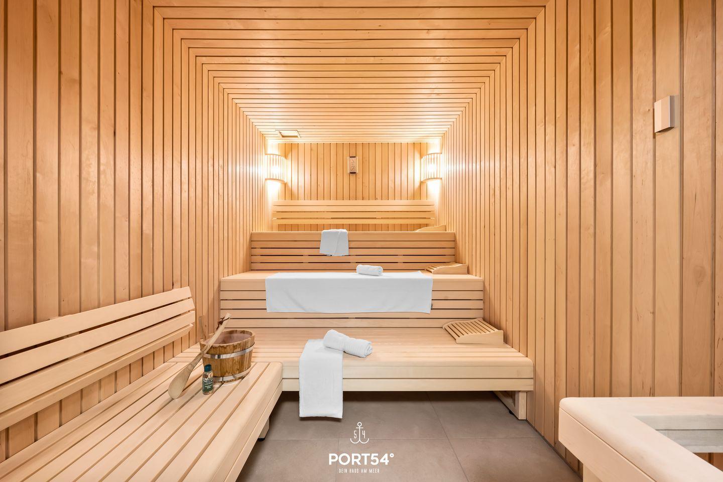 Als Gast dieser traumhaften Ferienwohnung steht Ihnen der kostenfreie Zugang zum Spa-Bereich zur Verfügung. Hier erwartet Sie ein beheizter Indoor-Pool und eine finnische Sauna - und das alles mit einem einzigartigen Blick auf den Hafen und die Ostsee!