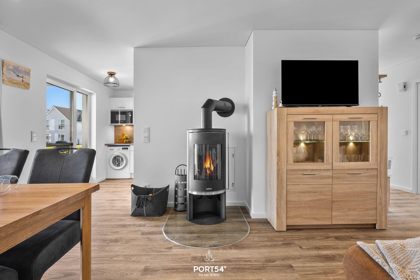 Die Ferienwohnung "Ruhepol" im Erdgeschoss bietet 80m² für bis zu 4 Personen. Sie umfasst einen Wohnbereich mit Kamin, eine vollausgestattete Küche, 2 Schlafzimmer, ein modernes Bad mit Infrarot-Sauna sowie eine Terrasse mit Gartenmöbeln und Elektro-Grill. Ein Parkplatz ist vorhanden. Aktuell verwenden wir Musterbilder. Bitte beachten Sie, dass sich das OstseeResort Olpenitz derzeit noch im Aufbau befindet und es zu Bautätigkeiten in der Nähe Ihrer Unterkunft kommen kann.