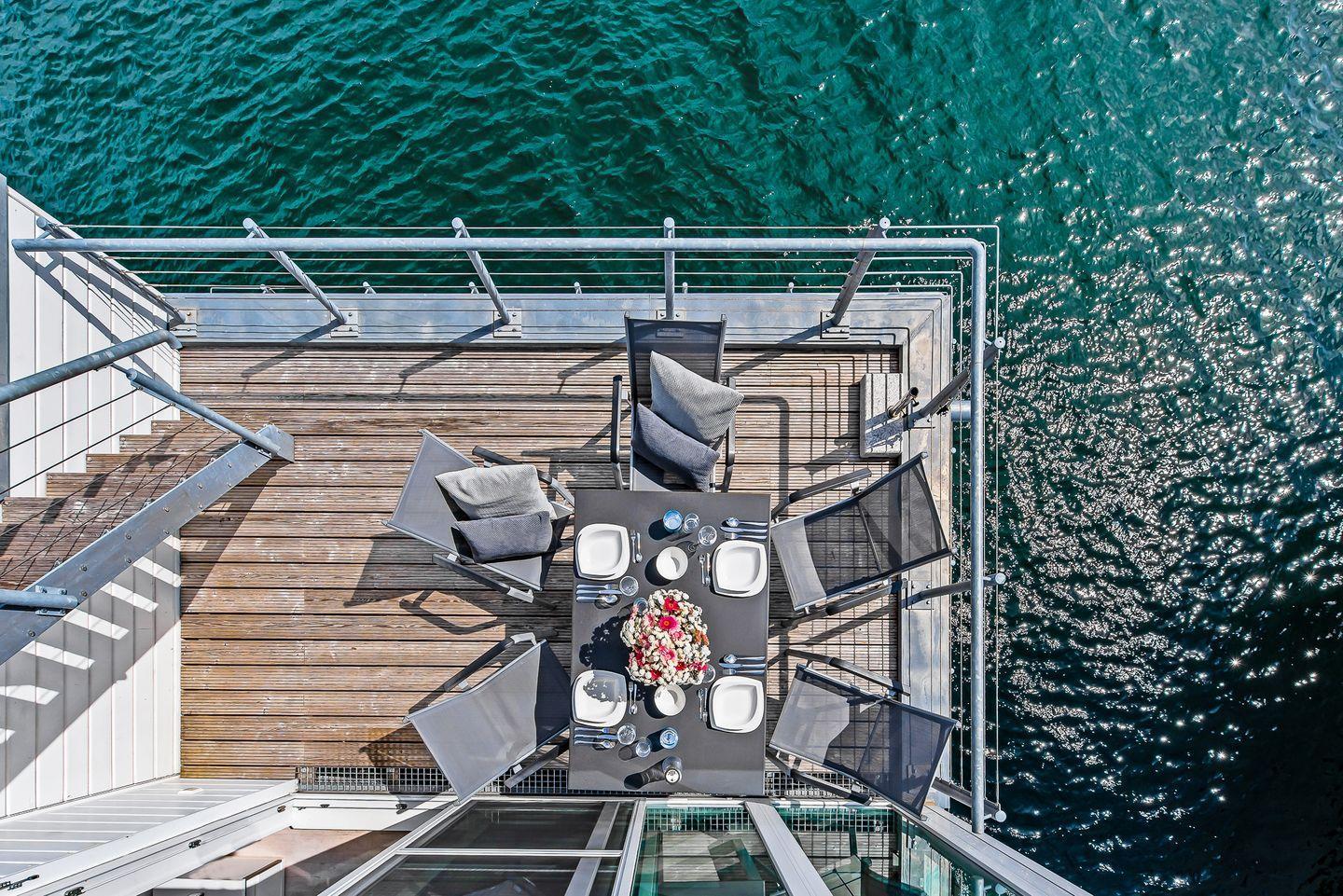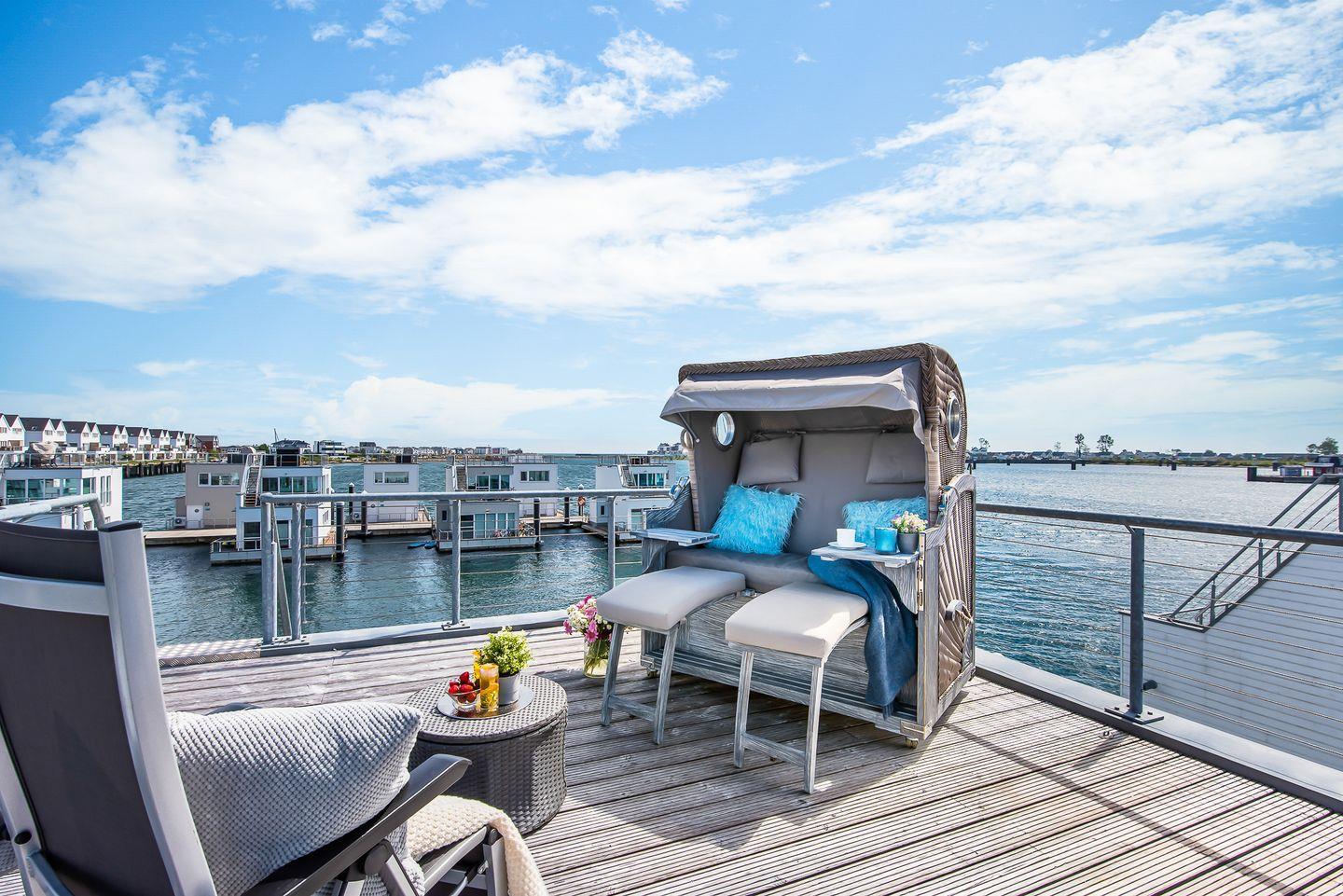 Bora - auf dem Wasser, Dachterrasse, Strandkorb, Panoramablick, finnische Sauna