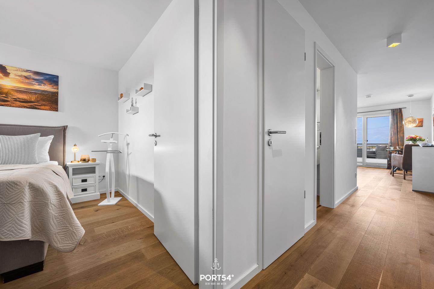 Die Ferienwohnung "Enjoy" in Olpenitz erwartet Sie nahe des Meeres gelegen in der exklusiven Urlaubsregion Olpenitz. Die moderne Wohnung besticht durch ihren äußerst guten Meerblick und ihre großzügige Ausstattung auf 51 m² Wohnfläche und bietet Platz für 2 Personen. In der freundlichen, offenen Wohnküche mit Essbereich genießen Sie nicht nur die hochwertige Küchenzeile, sondern können Ihren Blick über das Wasser schweifen lassen. Der Essplatz bietet einen ruhigen Rahmen für gemeinsame Mahlzeiten, während Sie auf dem gemütlichen Sofa entspannen oder am TV das Unterhaltungsprogramm wählen – insgesamt sind zwei Fernseher vorhanden. Die Fußbodenheizung sorgt zu jeder Jahreszeit für angenehme Temperaturen. Das Schlafzimmer, ausgestattet mit ein Doppel-Boxspringbett (160x200cm) und Verdunkelungsmöglichkeiten, bietet hohen Schlafkomfort für erholsame Nächte. Für Familien mit Kleinkindern stehen ein Babybett und ein Kinderhochstuhl bereit. Die Fenster sind mit Sichtschutz versehen, sodass Sie Privatsphäre genießen können. Das Badezimmer überzeugt mit einer bodengleichen Dusche und modernen Ausstattungen wie Haartrockner, Kosmetikspiegel und einem Handtuchtrockner. Selbstverständlich sind Erstausstattung und ein Wäscheständer vorhanden. Die private Waschmaschine steht ausschließlich Ihnen zur Verfügung, ergänzt durch praktische Haushaltshelfer wie Staubsauger, Bügelbrett und Bügeleisen. Der Balkon, ausgestattet mit Gartenmöbeln, ist ein weiteres Highlight der Ferienwohnung. Hier entspannen Sie bei frischer Meeresbrise und schönem Ausblick auf das Wasser des Hafenbeckens von Olpenitz – ideale Bedingungen für ruhige Momente am Morgen oder den Ausklang eines erlebnisreichen Urlaubstags. Hier finden Sie zudem einen Elektrogrill für gesellige Grillabende. Die Unterkunft ist als Nichtraucherobjekt ausgewiesen. Die Umgebung lässt keine Wünsche offen: Sie sind nur wenige Schritte vom Wasser und nur einen kleinen Spaziergang vom Strand entfernt. Für sportlich Aktive und Erholungssuchende bietet Olpenitz zahlreiche Freizeitmöglichkeiten wie Radfahren, Wandern, Wassersport und Nordic Walking. Ein kostenloser Privatparkplatz steht Ihnen zur Verfügung, und ein Aufzug erleichtert den Zugang zur Wohnung im zweiten Stock. WLAN ist selbstverständlich inklusive, sodass Sie auch während Ihres Aufenthalts online bleiben. Sichern Sie sich Ihren Aufenthalt in der stilvollen Ferienwohnung "Enjoy" und erleben Sie einen komfortablen Urlaub in toller Lage.
