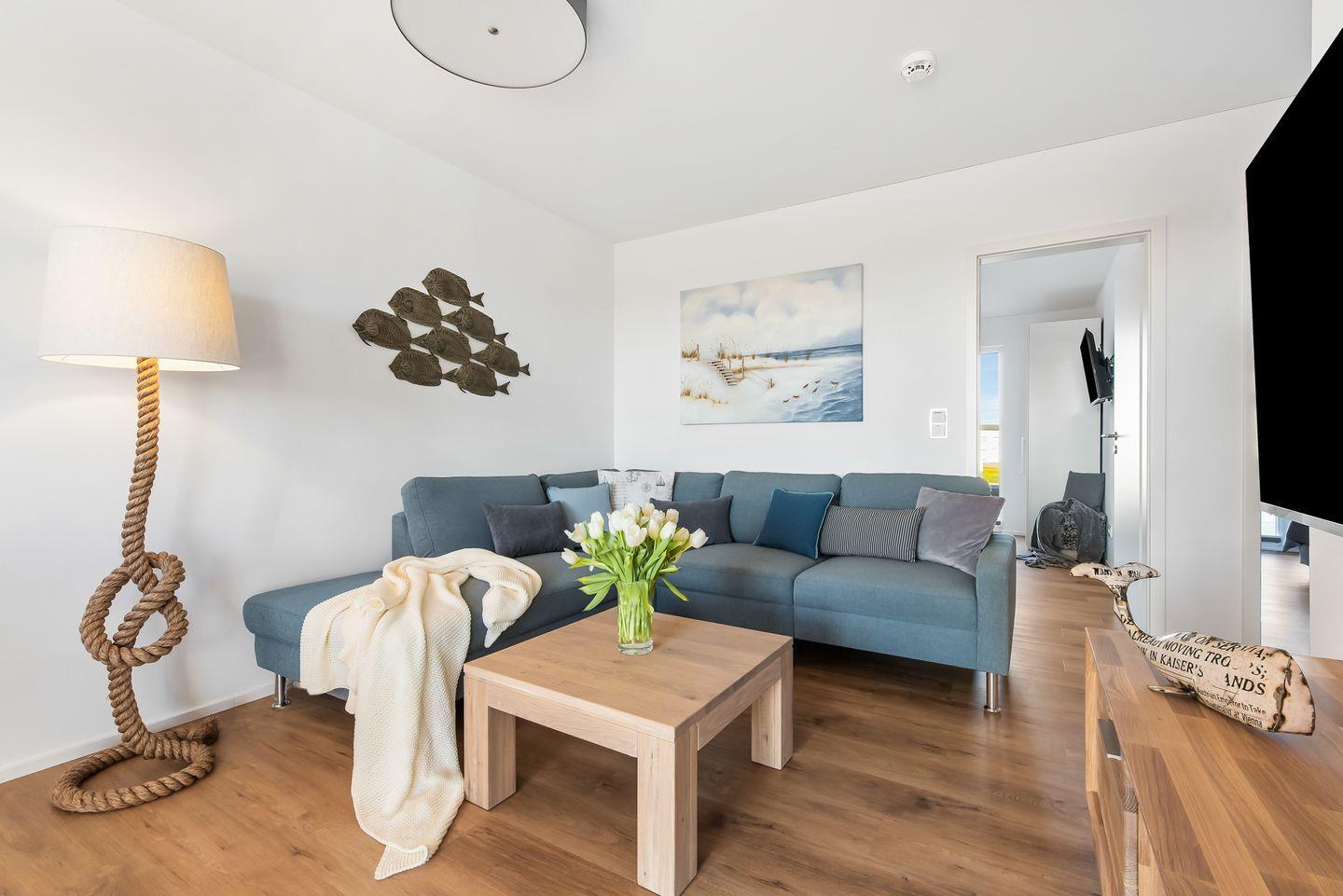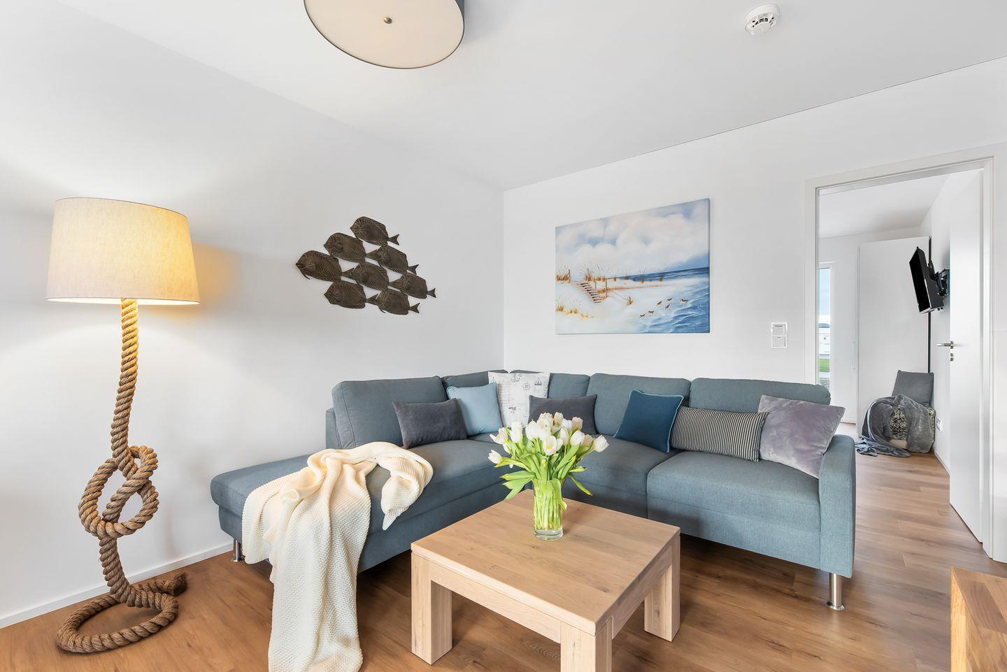 Der offene Wohn- und Essbereich besticht durch eine moderne und gemütliche Atmosphäre. Das Wohnzimmer ist mit einem hochwertigen Sofa, Kaminofen und digitalem TV (insgesamt sind drei Fernseher im Haus vorhanden) ausgestattet – ideal für entspannte Abende zu jeder Jahreszeit. Eine Fußbodenheizung sorgt für wohlige Temperaturen auch während der kühleren Monate und bieten damit ganzjährigen Wohnkomfort.