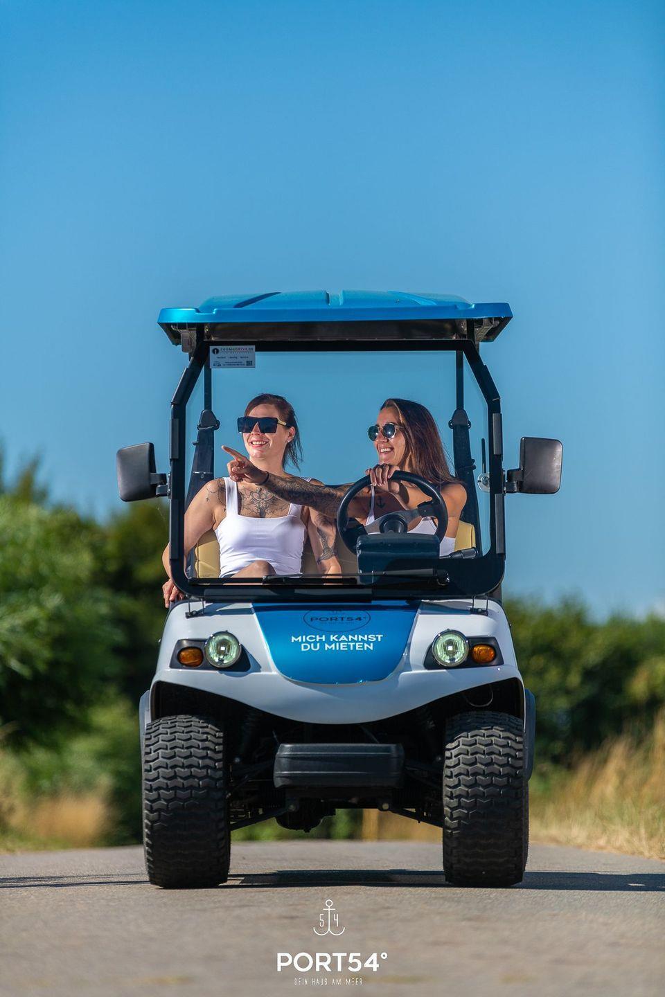 In der Unterkunft gibt es zwei Schlafzimmer, wovon eins über ein Doppel-Boxspringbett (180x200cm) und das andere über zwei Einzel-Boxspringbetten (90x200cm), die ebenfalls als Doppelbett gestellt sind, verfügt. Beide Schlafzimmer verfügen über einen Kleiderschrank, Fliegengitter, Verdunkelungsmöglichkeiten sowie je ein Smart-TV für erholsame Nächte. Sportbegeisterte finden in dieser Wohnung ein Rudergerät, sodass das Training auch im Urlaub fortgesetzt werden kann. Für längere Aufenthalte stehen eine Waschmaschine plus Wäscheständer und Bügelbrett und Bügeleisen bereit. Sämtliche Fenster der Wohnung sind mit Sichtschutz und Fliegengittern ausgestattet. Im Außenbereich können Sie auf der überdachten Terrasse mit hochwertigen Gartenmöbeln, Strandkorb und Elektrogrill entspannen und gemeinsame Stunden im Freien verbringen. Der Privatparkplatz direkt am Haus gewährleistet eine komfortable Anreise und überdachte Fahrradstellplätze können Sie vor dem Haus nutzen. Auch die kleinsten Gäste finden hier passende Ausstattung – ein Kinderhochstuhl, ein Babybett sowie ein Tritthocker stehen zur Verfügung. Hunde sind ebenfalls willkommen, sodass die ganze Familie mitkommen kann. Für die Vierbeiner steht auch ein Napf bereit. Neben der Unterkunft befindet sich eine Wiese, die perfekt zum Spielen für Kinder und Hunde geeignet ist.