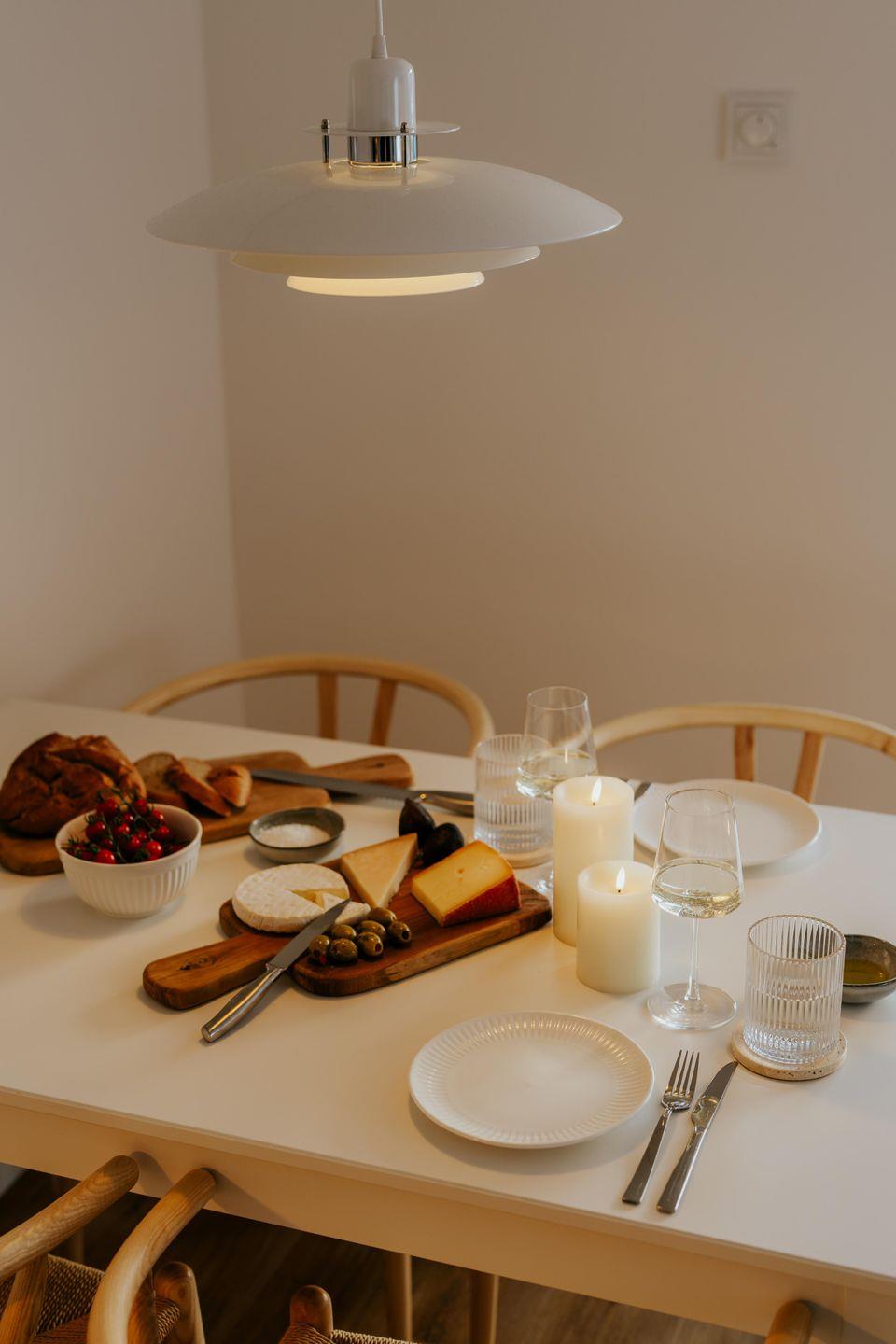 Die Ferienwohnung besticht mit einem durchdachten Raumkonzept und ihrer wertigen Ausstattung im skandinavischen Stil – klar, reduziert und mit viel Liebe zum Detail. Ruhige Farben, natürliche Materialien sorgen für ein harmonisches und aufgeräumtes Wohngefühl. Sanft gedimmtes Licht auf Knopfdruck taucht die Räume am Abend in eine stimmungsvolle Atmosphäre. Und wenn es draußen kühler wird, schenken Kaminofen und Fußbodenheizung wohlige Wärme.