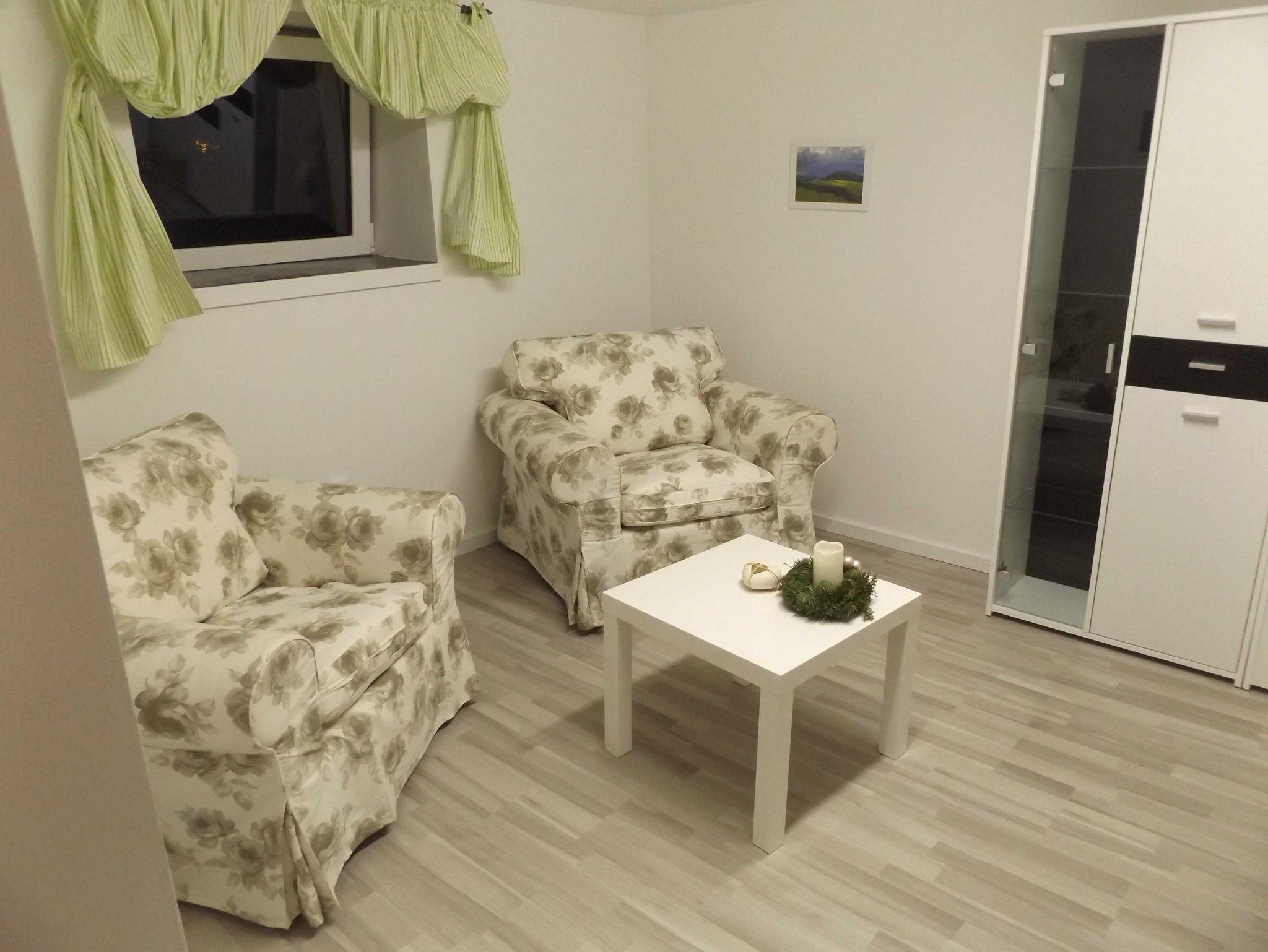 ein Badezimmer, ein Wohnzimmer mit TV-Sat und eine geräumige, gut