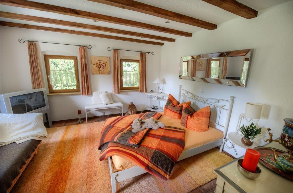 very nice bedroom with view into the forest, double bed ( bed 1,60m x 2,00m )