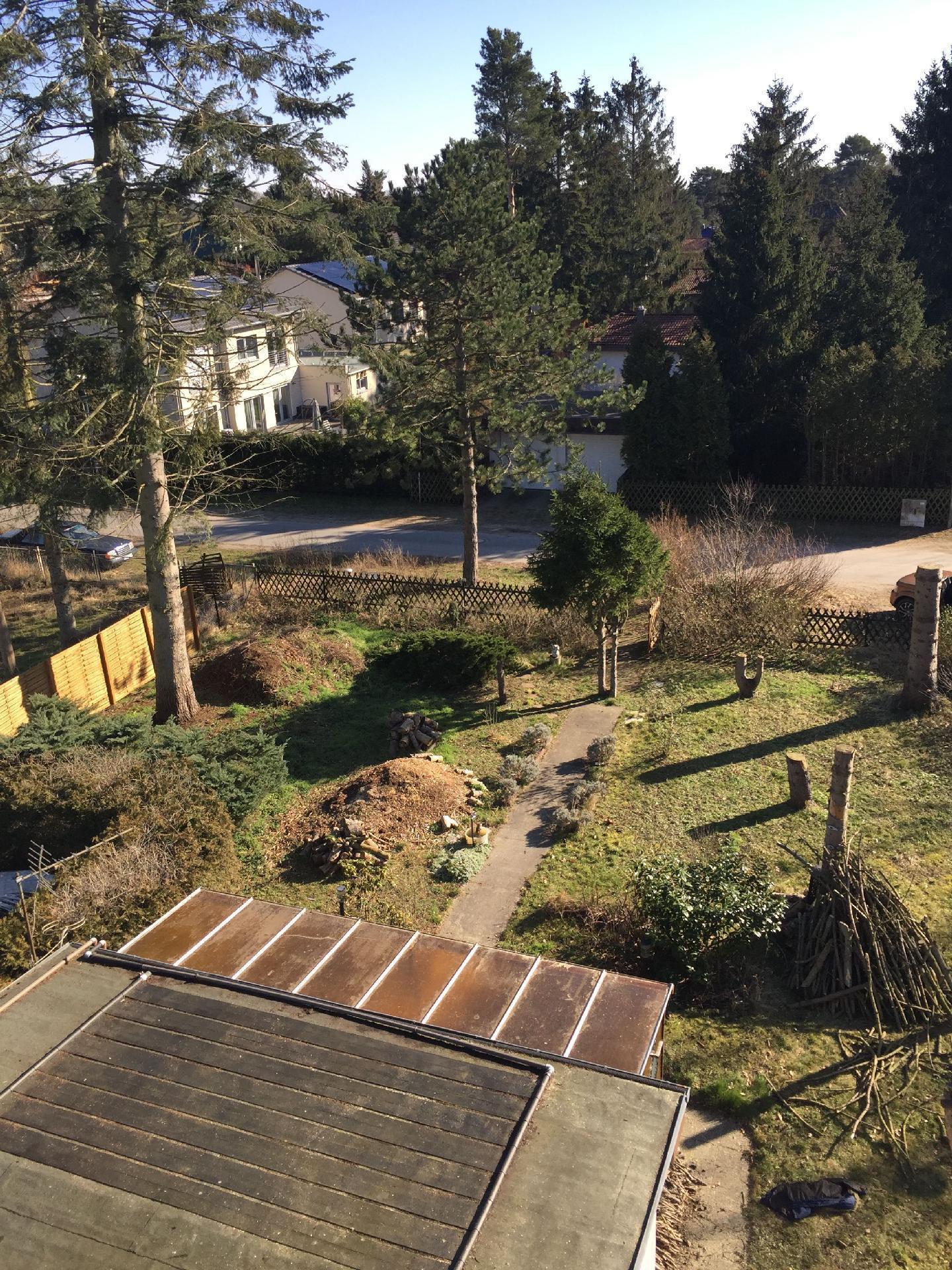 The small bathing beach (public) on the Oranienburg Canal is in front of the garden. The plot is 900 square metres and fenced. The garden had large conifers, which unfortunately fell victim to the bark beetle. It is nevertheless somewhat wooded/natural. A little overgrown and a nice covered terrace. Parking is free of charge. There is the possibility to put up a tent on request so a maximum of 2 people can travel. you can take very nice walks on the canal and along the water.