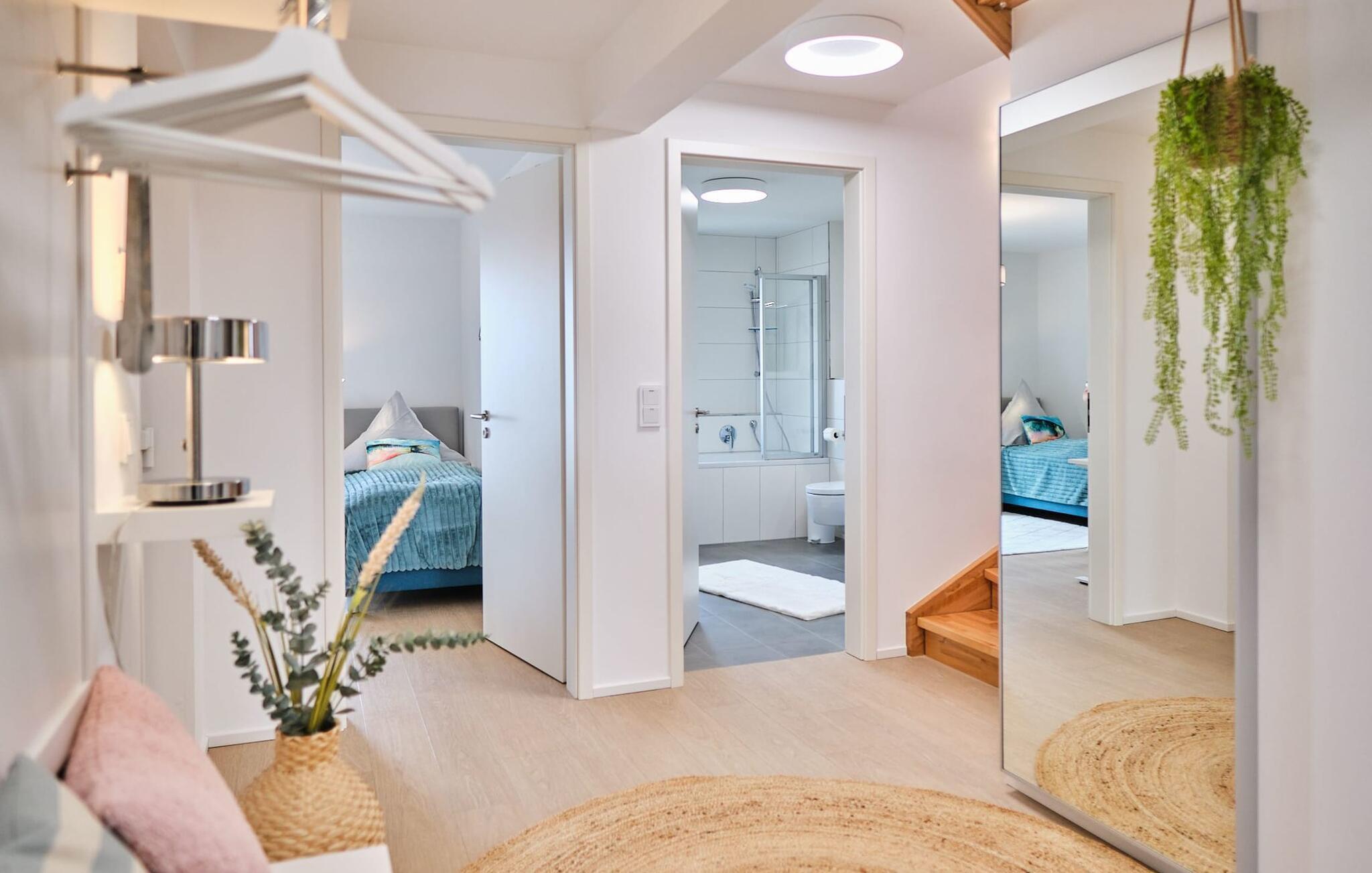 ORO MARE er en rummelig og rummelig maisonette ferielejlighed på første og anden sal med udsigt over havnebassinet. Havnepromenaden i OstseeResort Olpenitz med dets voksende udbud og indkøbsmuligheder samt sejl- og sportsbådshavnen i OstseeResort Olpenitz kan nås til fods. Den maritime minigolfbane ligger i umiddelbar nærhed og byder på sjov for hele familien. Når I går ind i ORO MARE på første sal, begynder decelerationen fra allerførste øjeblik. I befinder jer direkte i lejlighedens afslapningsområde. På denne etage er der lejlighedens tre soveværelser med to dobbelte boxmadrasser og to enkeltbokse. Uanset hvilket soveværelse I vælger, kan I være sikker på en afslappende søvn. Soveværelserne er hver især udstyret med en stor fladskærm til underholdning og der er også en arbejdsstation med et højdejusterbart skrivebord. Der er også et veludstyret badeværelse med badekar på denne etage. Når I ankommer på anden sal, bliver I budt velkommen af vinduesfronten fra gulv til loft med den tilstødende terrasse. Kom ind og føl jer hjemme. At slappe af i den hyggelige opholdsstue, nyde udsigten over havnen fra vinduet eller se tv er ren afslapning og afslapning! Hverdagen bliver mere og mere fjern... Skulle vejret nogensinde blive nordisk, vil pejsen med sin brølende ild give yderligere hygge. Der er plads til yderligere to personer til at sove på sovesofaen. Det integrerede køkken er perfekt udstyret og af høj kvalitet. Komfortable havemøbler og en grill venter på jer på terrassen. I kommer direkte ind på den store sydvestvendte terrasse fra opholdsstuen. Her kan I tilbringe mange afslappende timer med heldagssol og se fantastiske solnedgange. Et andet komplet badeværelse med wellnesskarakter og en rummelig panoramabruser på gulvniveau og infrarød sauna runder den komplette pakke af ideelt til en afslappende ferie. Foran ferielejligheden finder I jeres egen parkeringsplads. Vores favoritsted: hyggelige timer med udsigt til sofaområdet foran den knitrende pejs i ORO MARE... Bemærk venligst: OstseeResort Olpenitz er meget populært, og der bygges fortsat i parken. Ikke desto mindre kan I se frem til en 5-stjernet standard og et førsteklasses ophold. Byggeaktiviteterne kommer ikke til at forstyrre jer på ferien, og derfor gives der ikke yderligere afslag i prisen.
