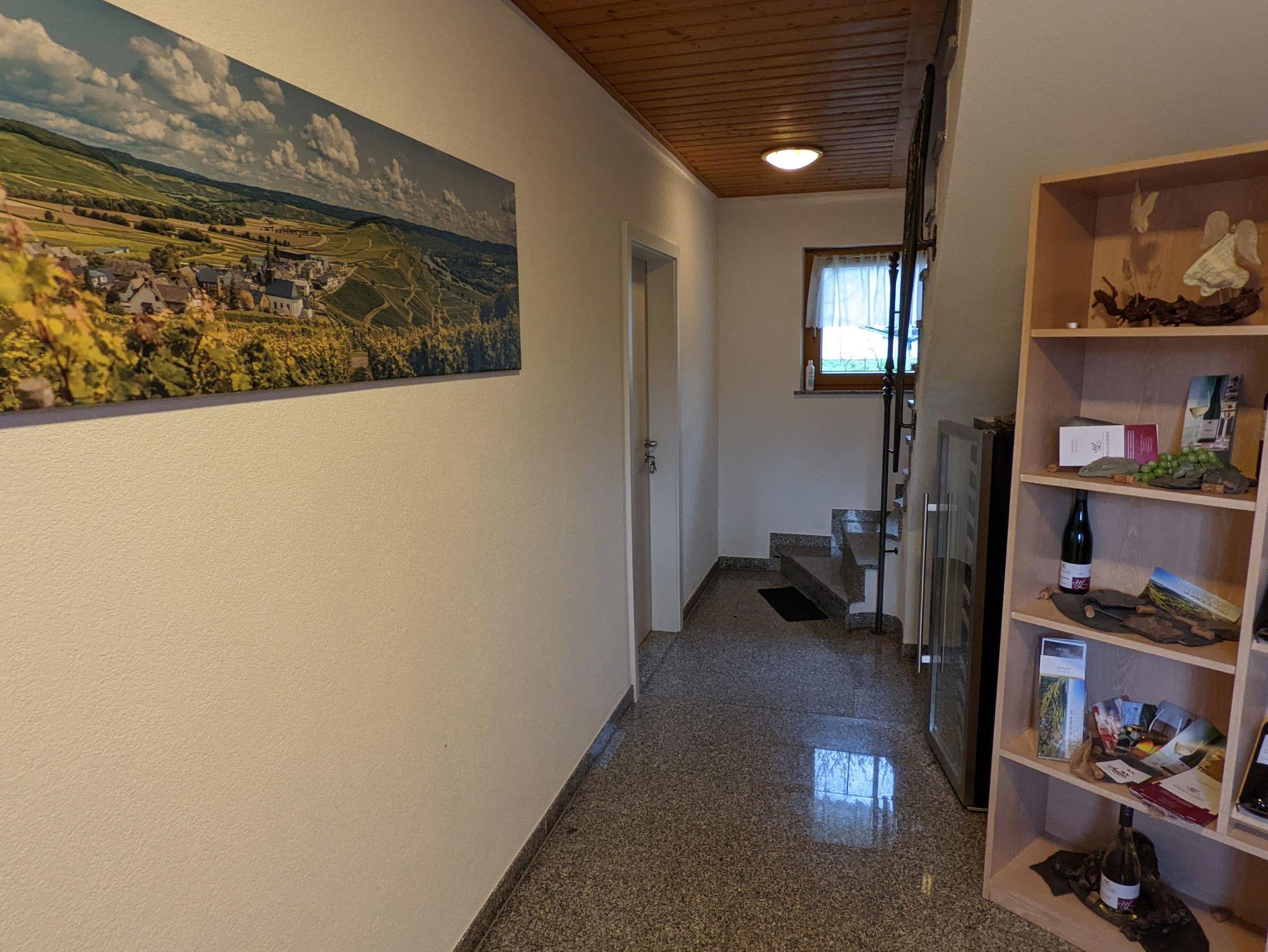 Ein besonderes Highlight ist unser Kühlschrank im Flur, der mit unseren selbst erzeugten Weinen gefüllt ist. Auf Wunsch können Sie auch an einer Weinprobe teilnehmen, um die Vielfalt unserer edlen Tropfen kennenzulernen. Erleben Sie den Charme des Weinguts und lassen Sie sich von der unvergesslichen Schönheit der Moselregion verzaubern.
