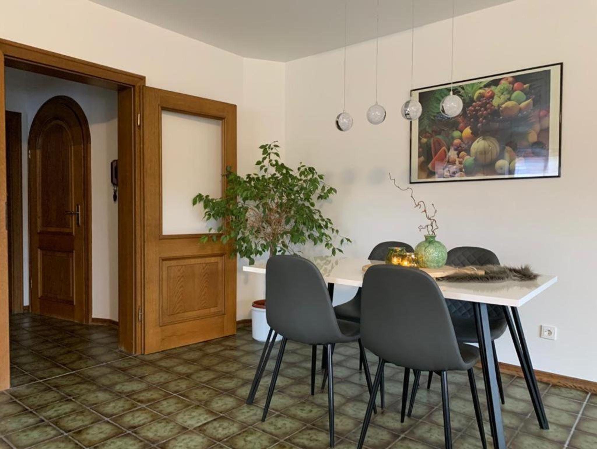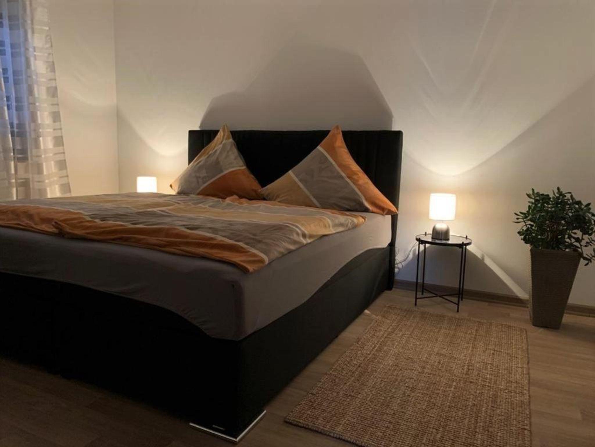 Unsere Gemütlich eingerichtete, helle Ferienwohnung (84qm) befindet sich im Erdgeschoss des Hauses. Im Wohnzimmer ist eine Bettcouch, ein Fernseher und eine Küchenzeile mit Elektrogeräten (Backofen, Herd, Kühlschrank, Spülmaschine) sowie einem Esstisch. Im Schlafzimmer ist ein Doppel-Boxspring-Bett. Die Wohnung ist für maximal 4 Personen ausgelegt.