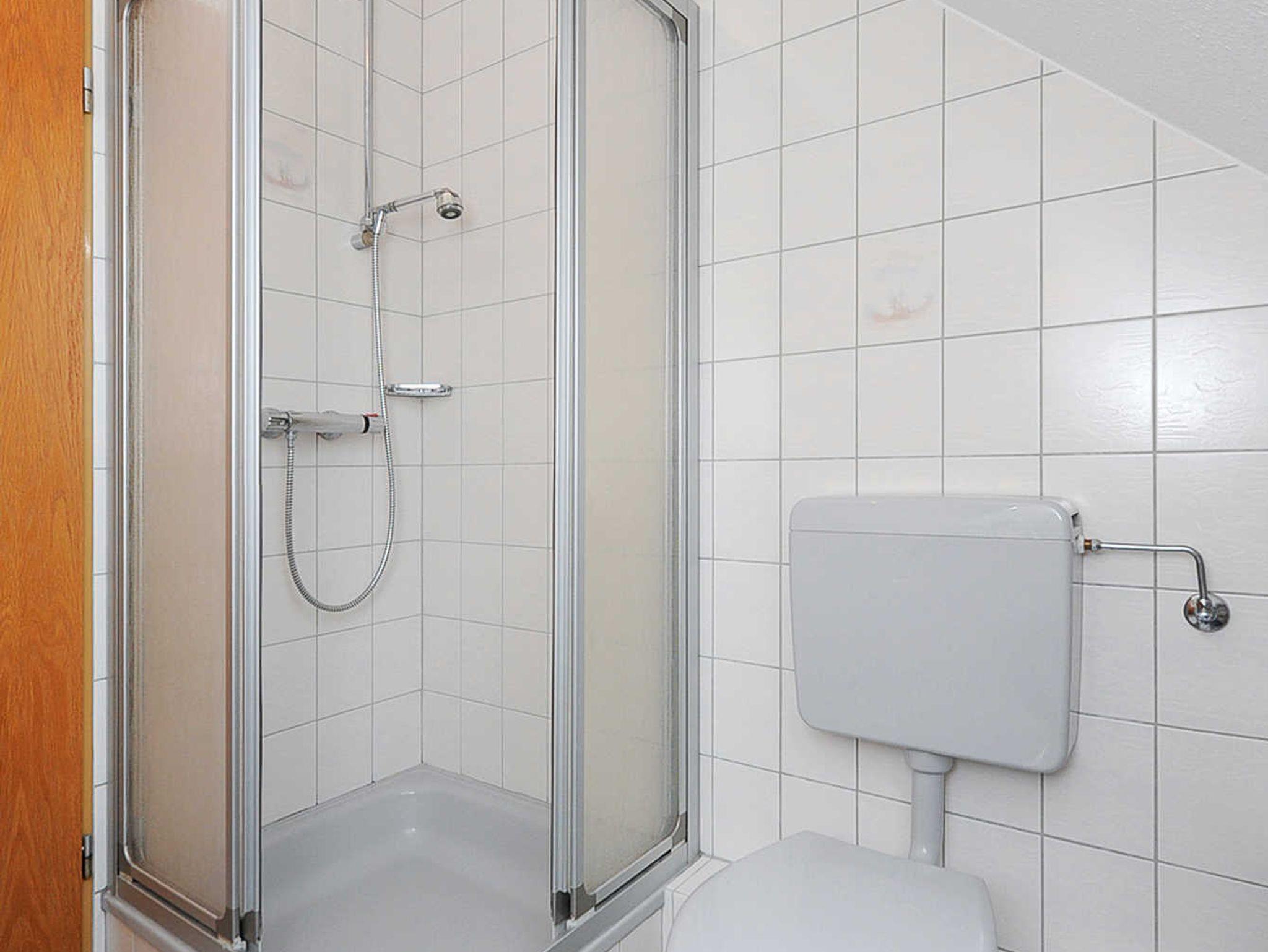 Größe ca. 40 Quadratmeter, Wohnzimmer, Küche, Schlafzimmer, Badezimmer mit Dusche, Waschtisch und WC, Obergeschoss, optimal für 2 Personen.