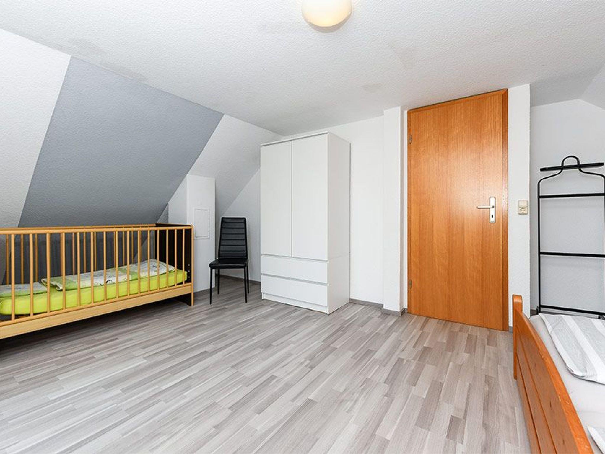 Größe ca. 65 Quadratmeter, Wohnraum mit integrierter Küche, Schlafzimmer, zweites separates, Schlafzimmer/Kinderzimmer, Badezimmer mit Dusche, Waschtisch und WC, Obergeschoss, Terrasse (Sitzgruppe im Garten), optimal für 2 bis 5 Personen und zusätzlich ein Kleinkind.