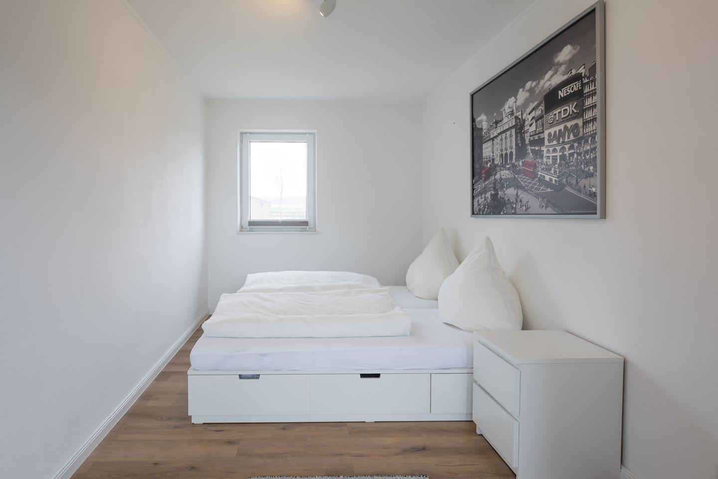 Die ca. 56 qm große Ferienwohnung verfügt über einen großzügigen Wohnraum mit Sofa (zum Schlafsofa ausziehbar) und einer offenen Küche mit Geschirrspüler, Kühlschrank, 2-Platten-Herd, Toaster, Kapselkaffeemaschine, Wasserkocher und Mikrowelle mit Backfunktion. Im Schlafzimmer steht Ihnen ein Doppelbett (auch als Einzelbetten stellbar) zur Verfügung.