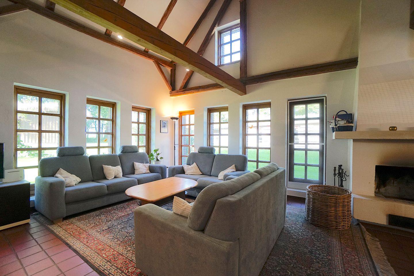 Das hochwertige Haus bietet Platz für bis zu sieben Personen, die sich auf insgesamt drei Schlafzimmer und einen Schlafplatz auf der Empore verteilen können.