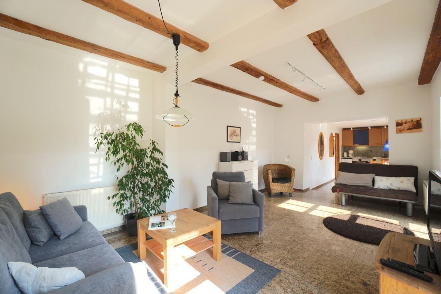 Die Ferienwohnung verfügt über ein geschmackvoll eingerichtetes Schlafzimmer und ein komfortables Badezimmer mit Dusche und Badewanne, ideal für entspannte Wellness-Momente nach einem erlebnisreichen Tag. Die offene Wohnküche ist mit allem ausgestattet, was Sie benötigen – von einem modernen Ceranfeld über eine Spülmaschine bis hin zu einer Mikrowelle und einer Kaffeemaschine. Genießen Sie Ihre Mahlzeiten am gemütlichen Esstisch oder entspannen Sie im einladenden Wohnzimmer mit Sofaecke und TV. Hier können Sie den Abend mit einem Film oder einer spannenden DVD ausklingen lassen.