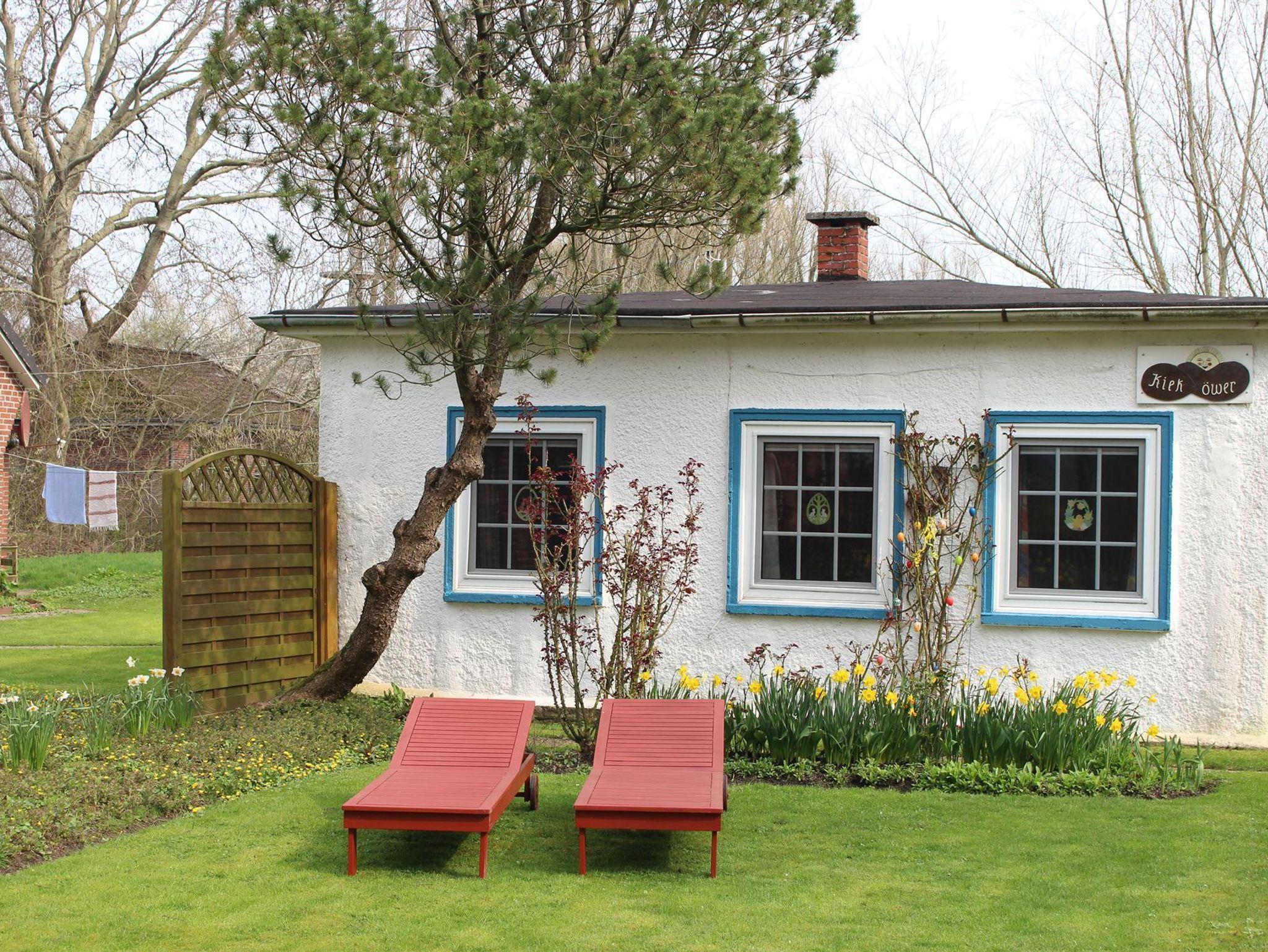 Herzlich willkommen in unserem kleinen Ferienhaus in Osterhever. Es befindet sich hinter unserem Wohnhaus im Garten.