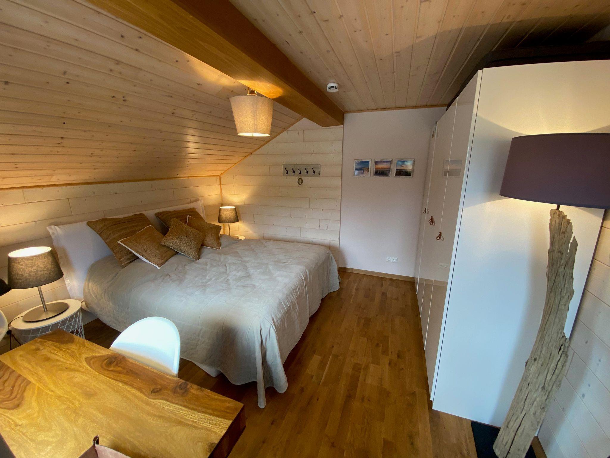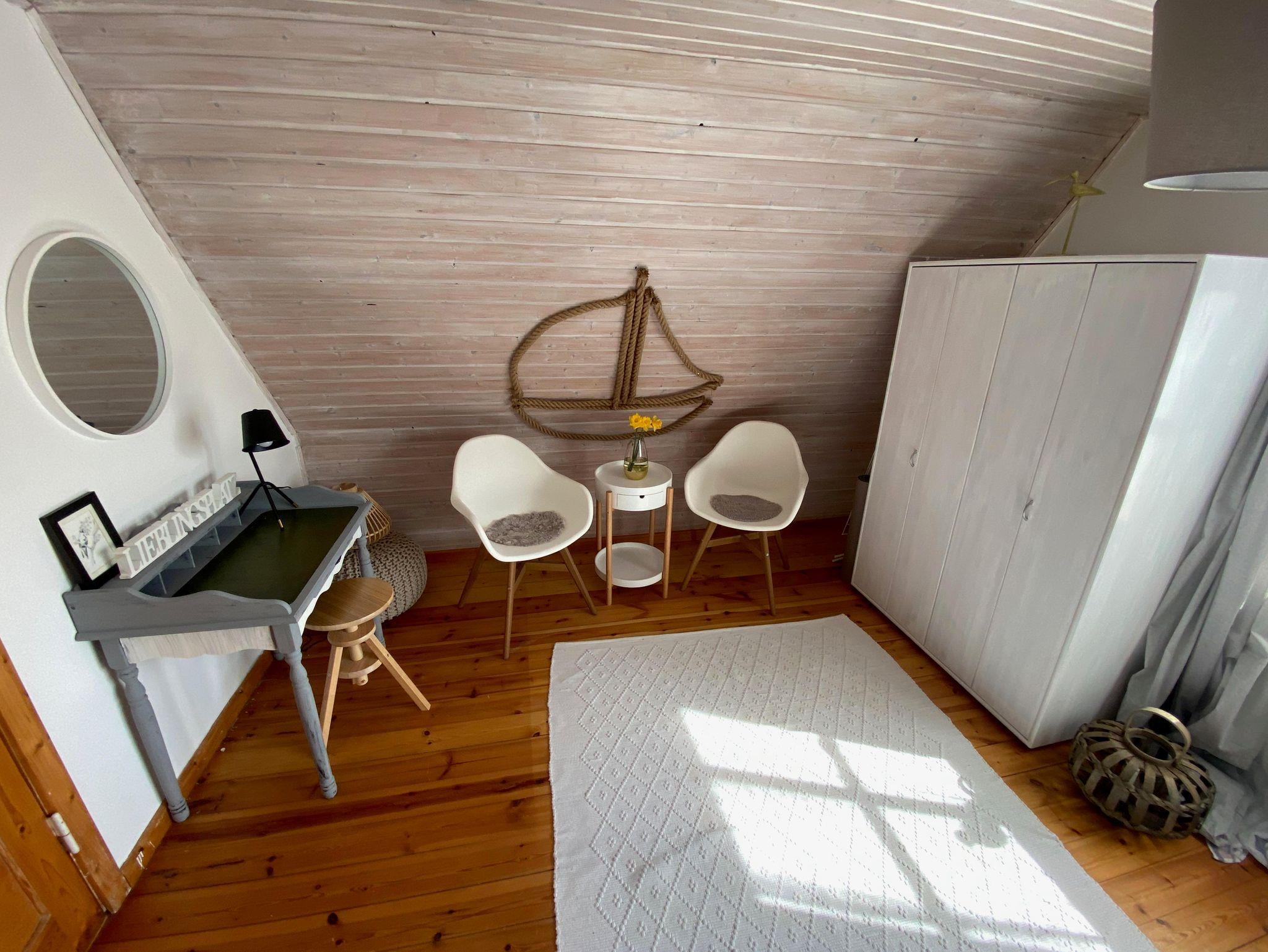 Das Haus verfügt über 2 Doppelschlafzimmer und 2 Einzelschlafzimmer mit Ausziehgelegenheit. Die Auziehbetten eigenen sich jedoch nur für kleine Kinder. Das im Erdgeschoss gelegene Schlafzimmer verfügt über ein separates Bad sowie einen zusätzlichen separaten Zugang von außen. Das Haus eignet sich dadurch ideal z.B. für Familien, die mit Großeltern anreisen möchten. Das Erdgeschoss ist ebenerdig aber nicht 100% barrierefrei (kleine ca. 6cm hohe Erhöhung zum Bad wegen der dort befindlichen Fußbodenheizung).