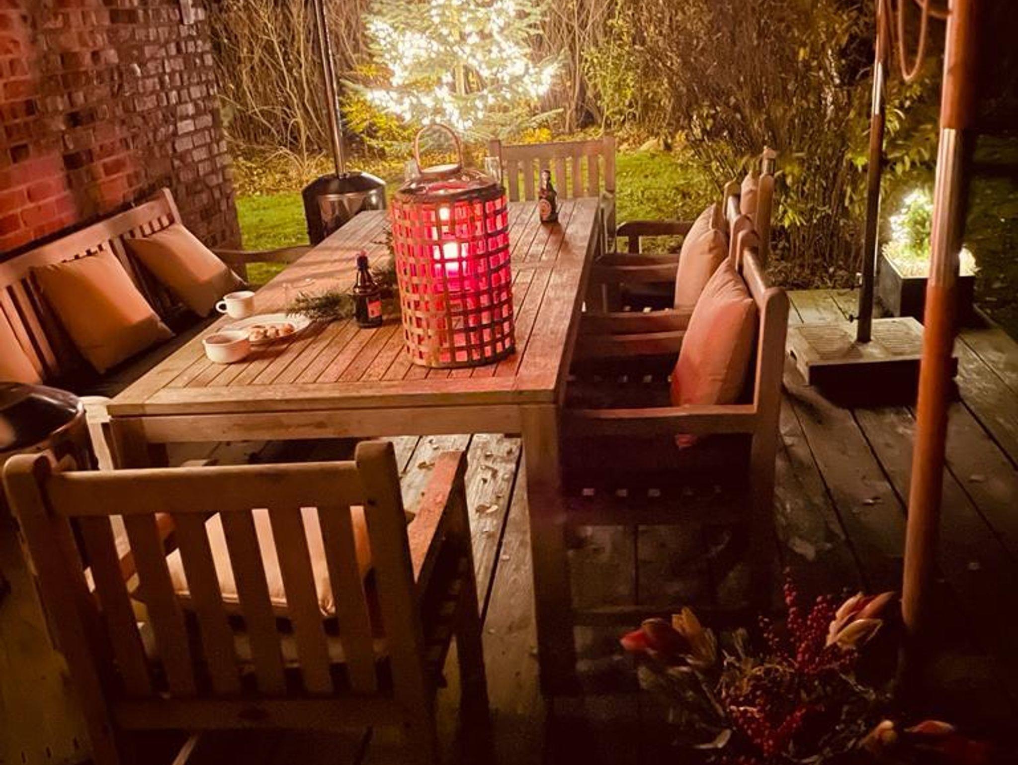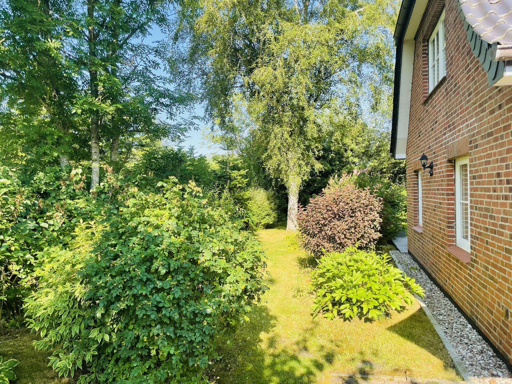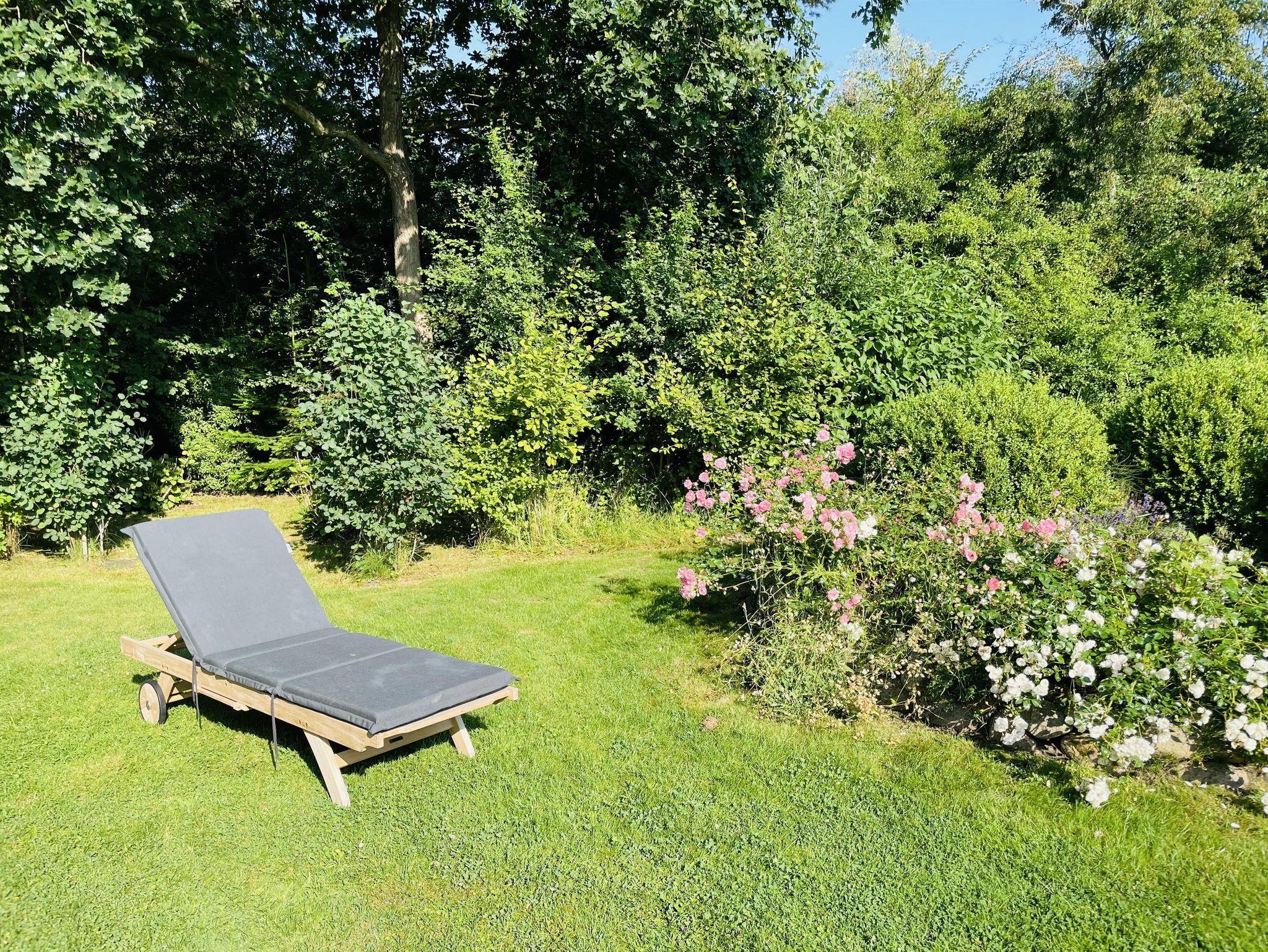 Der rd. 1500 m² große, schön angelegte Garten mit großer Sonnenterrasse und altem Obstbaumbestand steht Ihnen zur uneingeschränkten Nutzung zur Verfügung. Ob beim Relaxen auf der Sonnenliege, dem Spielen mit Kindern, dem Beobachten von Vögeln oder dem gemeinsamen Grillen, hier sind Sie ungestört. Es stehen hochwertige Gartenmöbel, Sonnenschirme und Outdoorkissen sowie Grill und Feuerschale zur Verfügung.