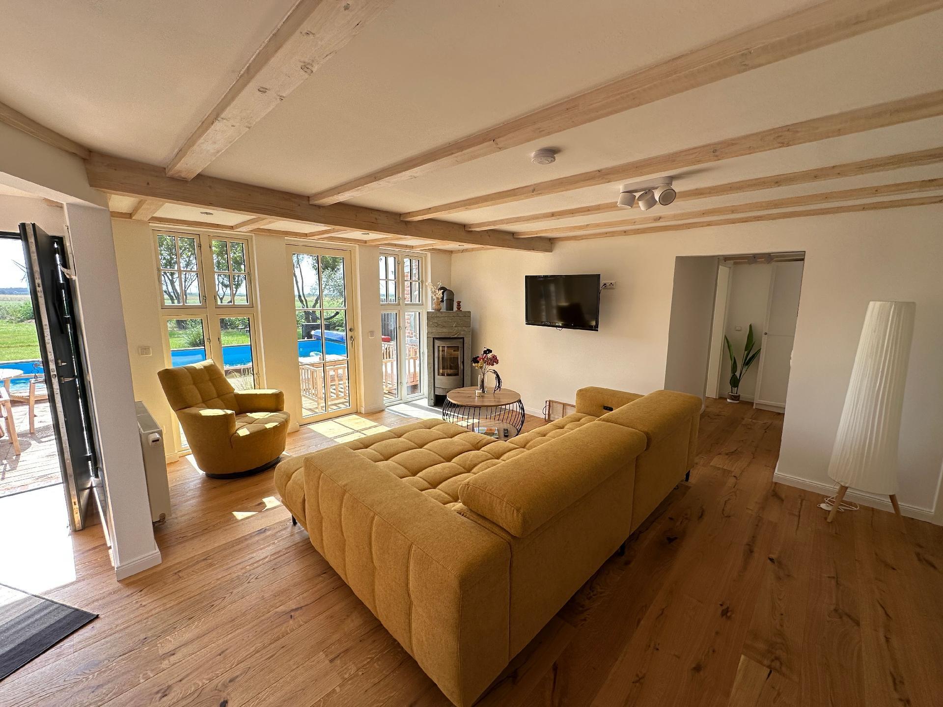 The outdoor area invites you to relax with its spacious wooden terrace, which offers sun all day long. A comfortable lounge set, a wooden table with four chairs, two sun loungers, a beach chair, a hammock and a hanging bench leave nothing to be desired for your relaxation. The highlight is the large, heated pool, which is available from May to October and provides refreshing moments. The approximately 2000 square metre garden also offers a liberating view over fields and meadows, while three free car parking spaces directly at the house offer you the necessary comfort for your mobility.