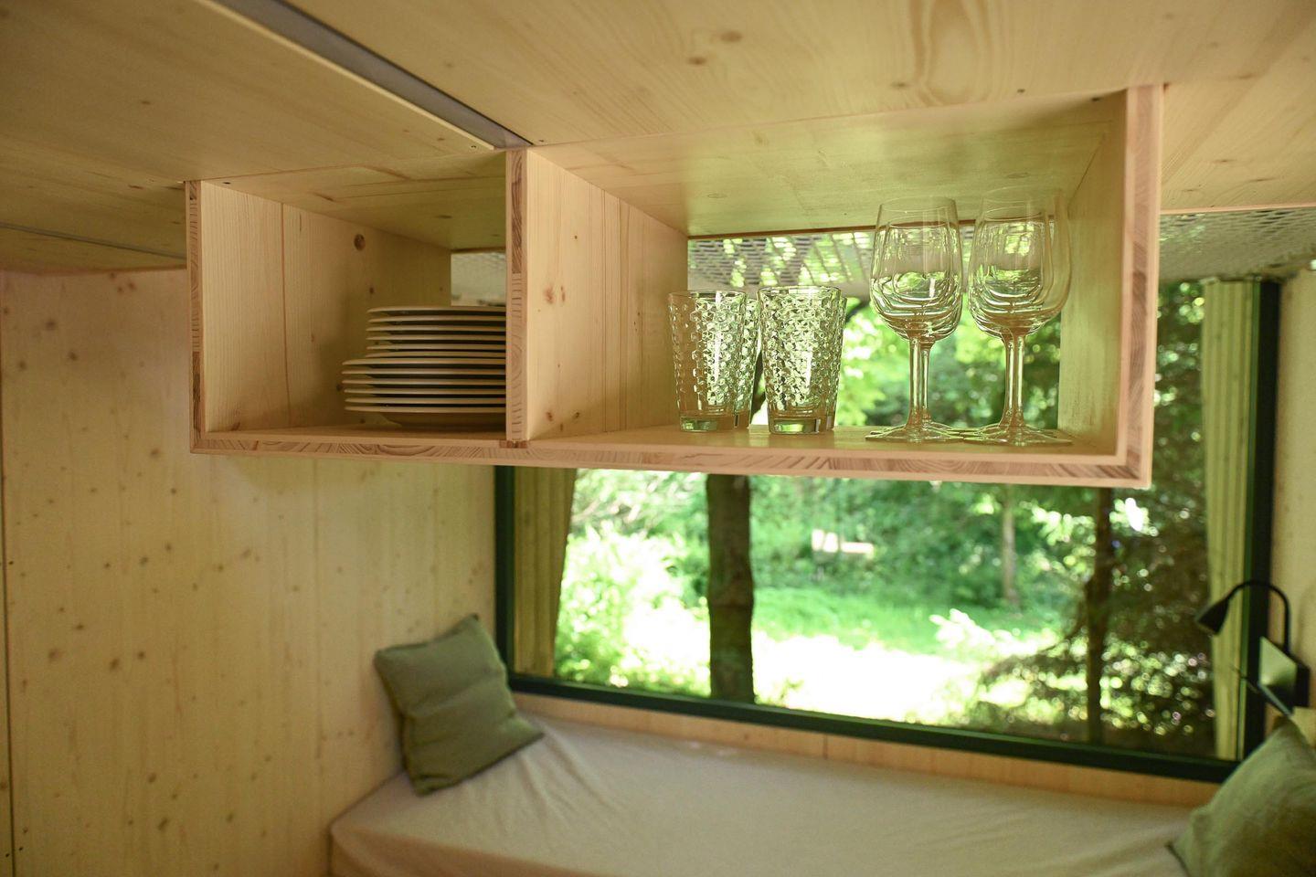 Das Tiny House steht in einer Talsenke mit Blick ins Grüne. Ob du morgens mit einer Tasse Kaffee auf der Terrasse sitzt, die Vögel beobachtest oder dich abends in das Relax-Netz über dem Wohnraum zurückziehst – das Nook 20 schafft Raum für Entspannung, Kreativität und bewusste Momente. Mit 20?qm Wohnfläche und weiteren 20?qm möblierter Terrasse bietet es überraschend viel Platz für Paare, kleine Familien, Freund*innen oder Alleinreisende.