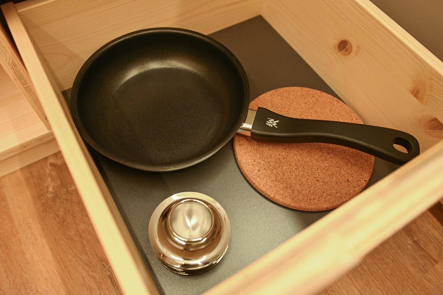 Innen erwartet dich ein durchdachtes Raumkonzept mit cleveren Stauraumlösungen, hochwertigem Holzfußboden und einer natürlichen Ausstattung. Das große Panoramafenster bringt die Natur direkt ins Haus. Tagsüber genießt du den Ausblick vom gemütlichen Sofa – abends wird es mit wenigen Handgriffen zum 1,40?m breiten Day Bed für zwei Gäste. Die Küche ist L-förmig, kompakt und gut ausgestattet – mit allem, was du für einfache, leckere Mahlzeiten brauchst.