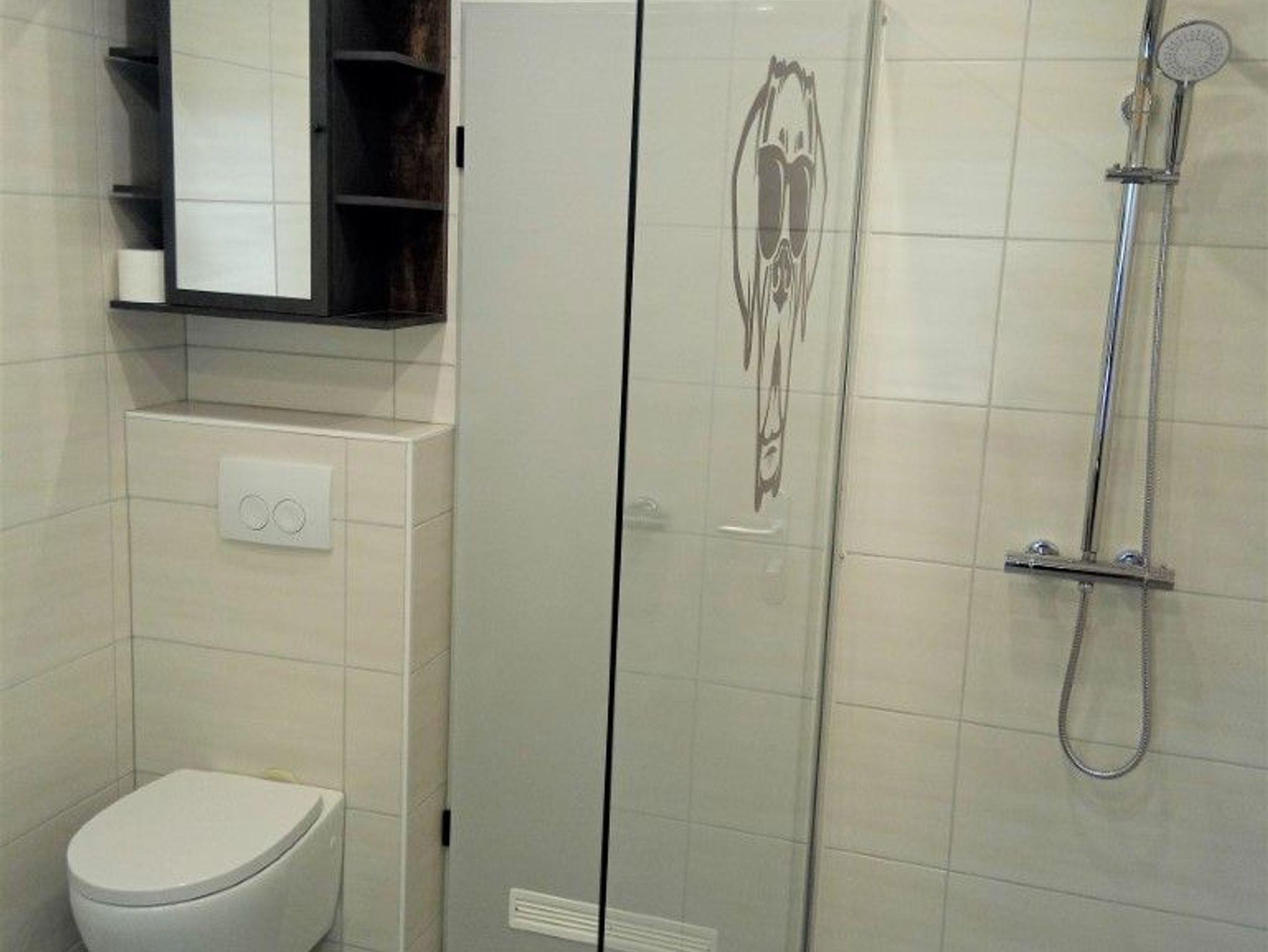 Auf 45m² im Erdgeschoss befindet sich ein gut ausgestattete Küche mit Senseo Kaffeemaschine, Kühlschrank mit Gefrierfach, Mikrowelle etc. Das Wohnzimmer mit Ledersofa und Fernseher mit HDMI - Anschluss sowie Essbereich lädt zum verweilen ein. Im Schlafzimmer befindet sich ein Doppelbett (180x200) sowie ein Kleiderschrank. Das Badezimmer verfügt über eine begehbare Dusche.