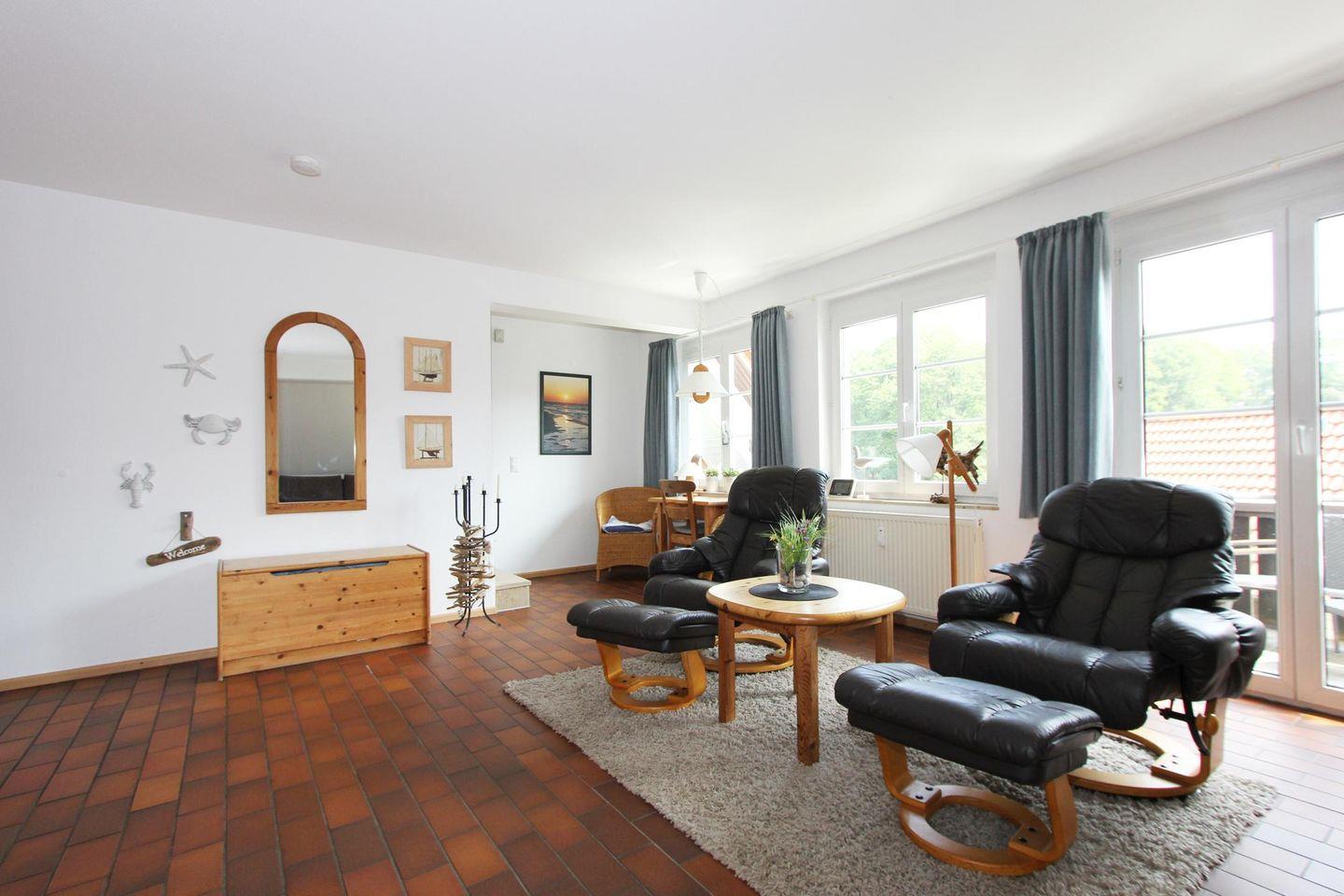 Die Maisonettewohnung erstreckt sich über das Ober- und Dachgeschoss. Die Wohnung hat ein sehr geräumiges und helles Wohnzimmer mit Fernsehcouch und gemütlichen Schwingsesseln.