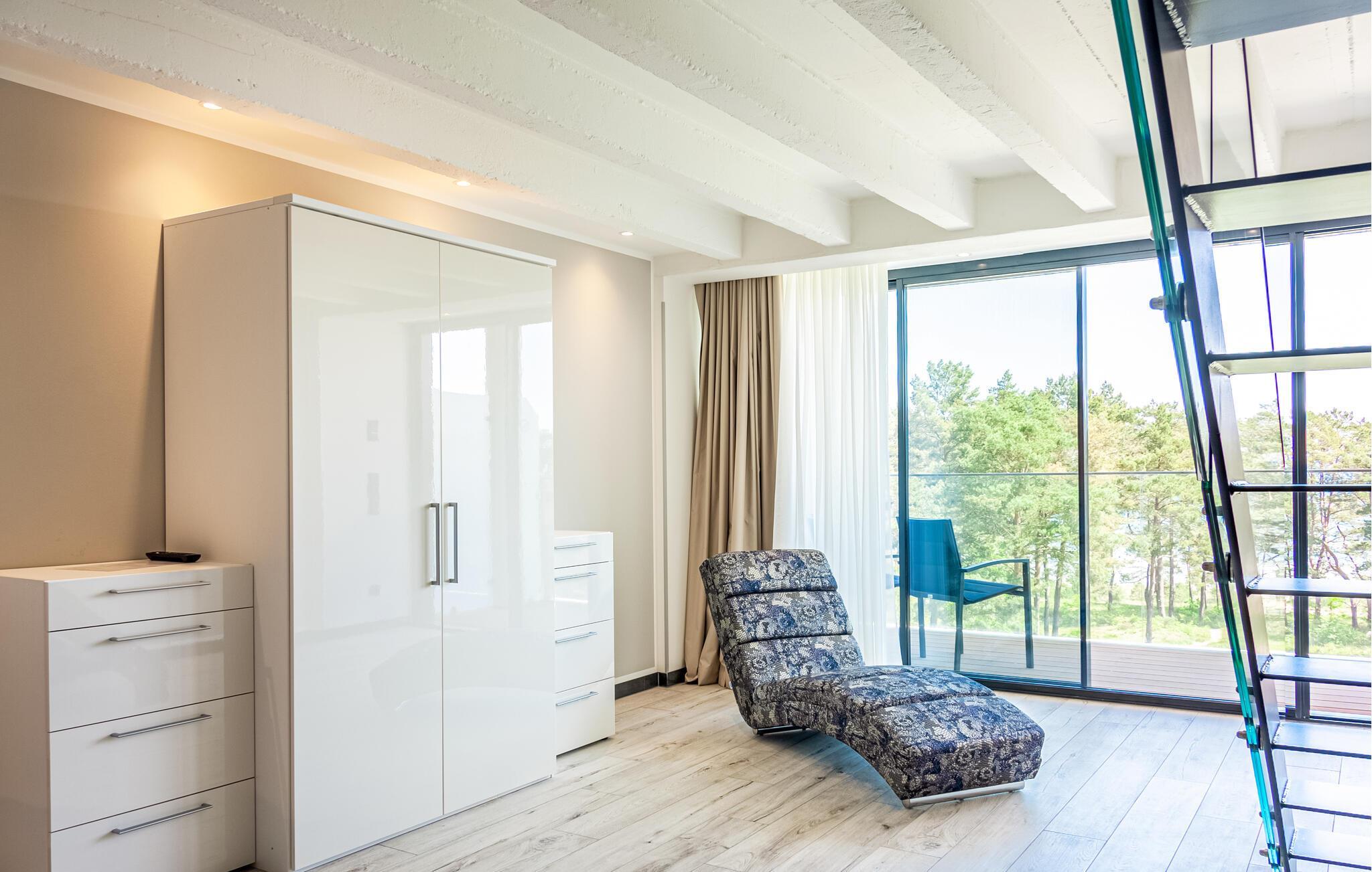 Penthouselejligheden ligger i det historiske badebykompleks Prora, der stammer fra 1936. I dag er den blevet omdannet til et moderne resort og lægger op til en afslappende ferie. Benyt jer af wellness-området med sauna og indendørs pool, som I kan nå fra jeres lejlighed på få minutter med elevator. Et fitnesscenter med moderne udstyr sikrer, at I kan træne selv på ferien. I kan også deltage i gratis fitness- og yogaklasser. Gæsterne på Prora Solitaire har mulighed for dagligt at nyde den store morgenmadsbuffet mod betaling. Fire ladestationer, hver med en ladekapacitet på 22,5 kW, er tilgængelige for elbiler. Ladestationerne, som er mod betaling, er placeret i parkeringshuset og er udelukkende tilgængelige for hotellets gæster.