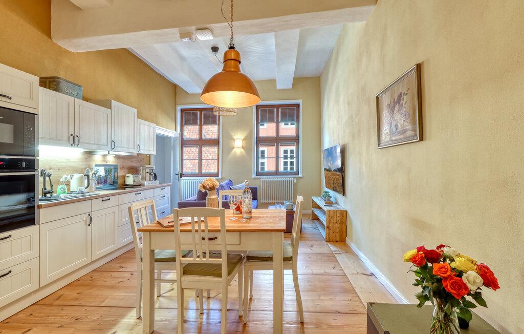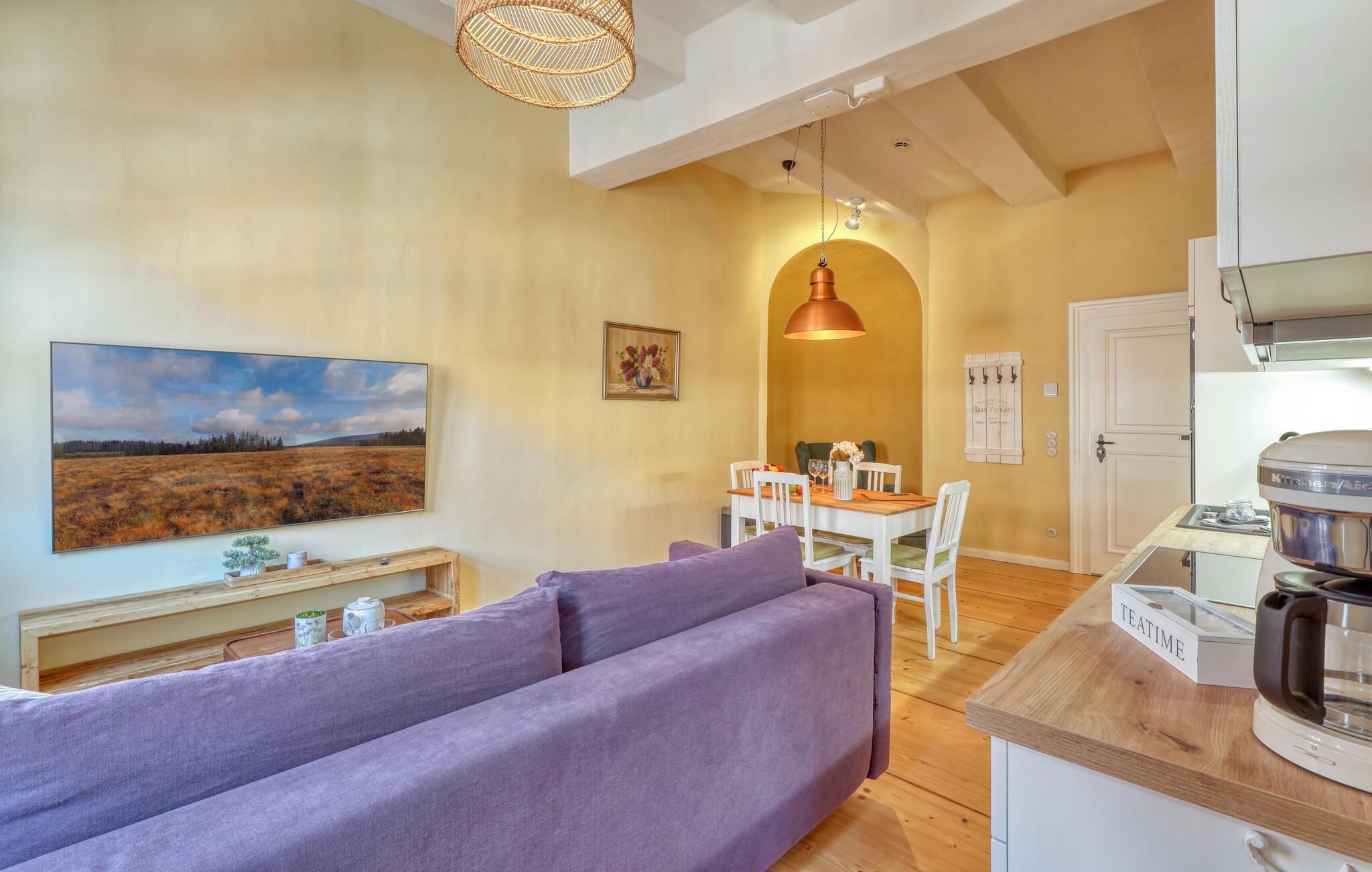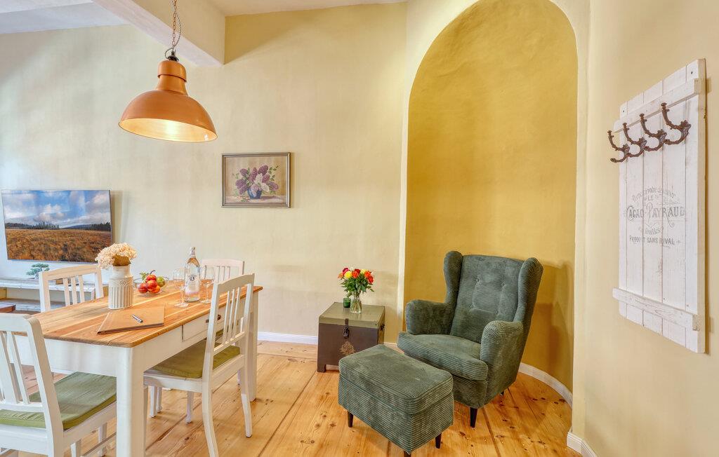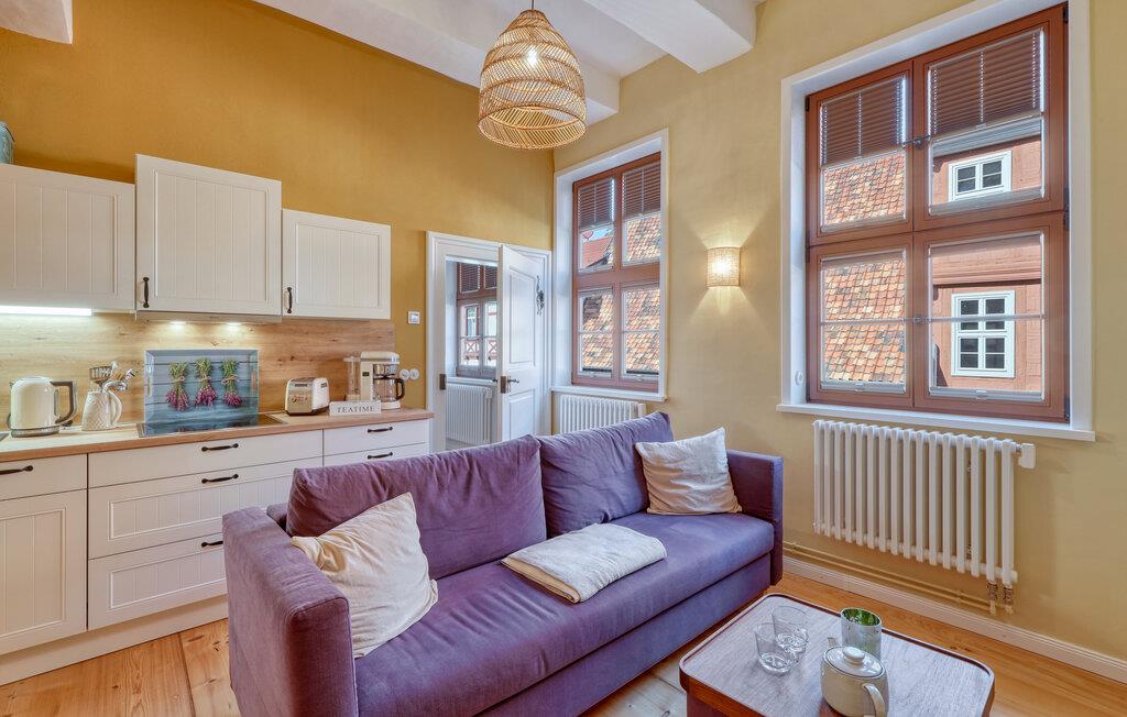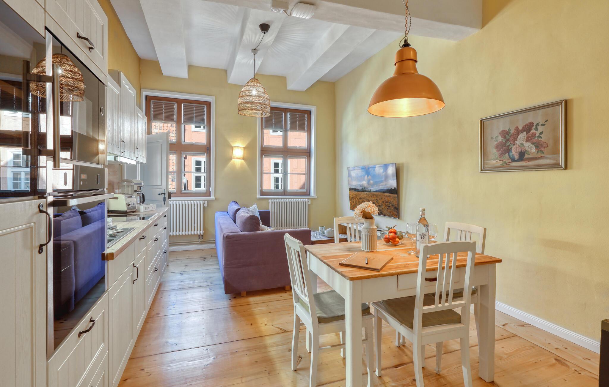 Velkommen til denne smukke lejlighed, der byder sine gæster velkommen med lyse, stilfuldt indrettede værelser i en historisk bygning. Føl jer godt tilpas her med dine kære og nyd komforten og den smagfulde atmosfære. Slap af i saunaen, som deles med andre gæster, og hold jer i form selv på ferien med fitnessudstyret. Nyd din første kaffe og et par solstråler på terrassen, inden I begiver jer ud i dine aktiviteter.