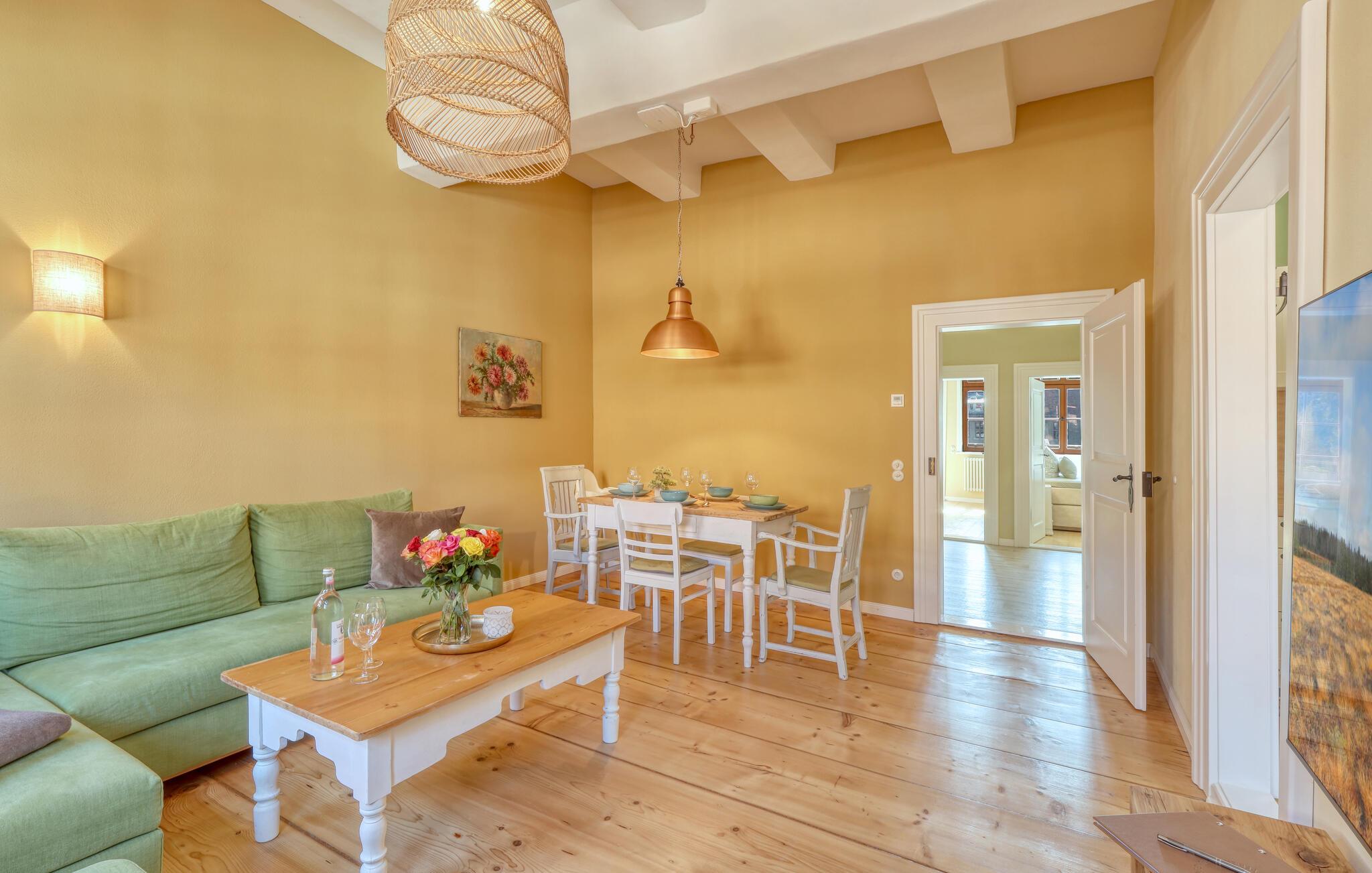 Velkommen til denne smukke lejlighed, der byder sine gæster velkommen med lyse, stilfuldt indrettede værelser i en historisk bygning. Føl jer godt tilpas her med dine kære og nyd komforten og den smagfulde atmosfære. Slap af i saunaen, som deles med andre gæster, og hold jer i form selv på ferien med fitnessudstyret. Nyd din første kaffe og et par solstråler på altanen eller terrassen, inden I begiver jer ud i dine aktiviteter.