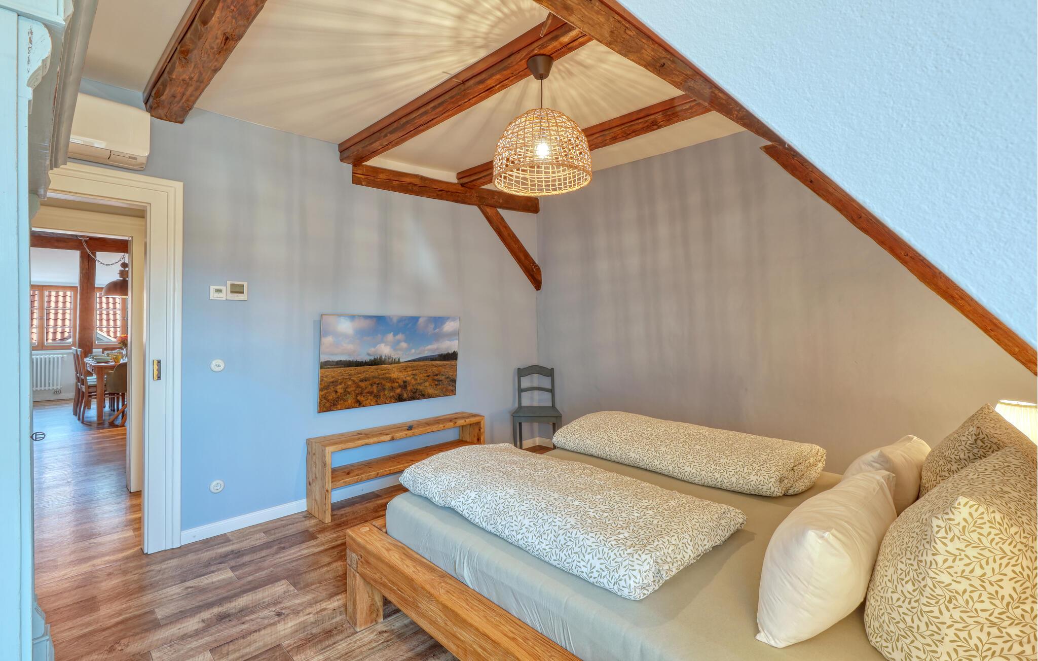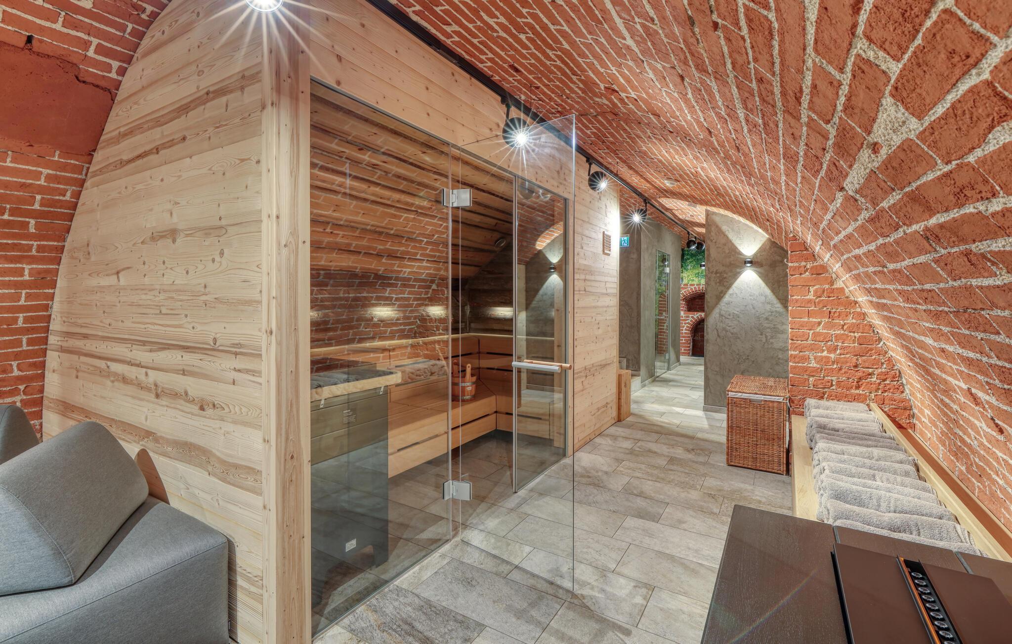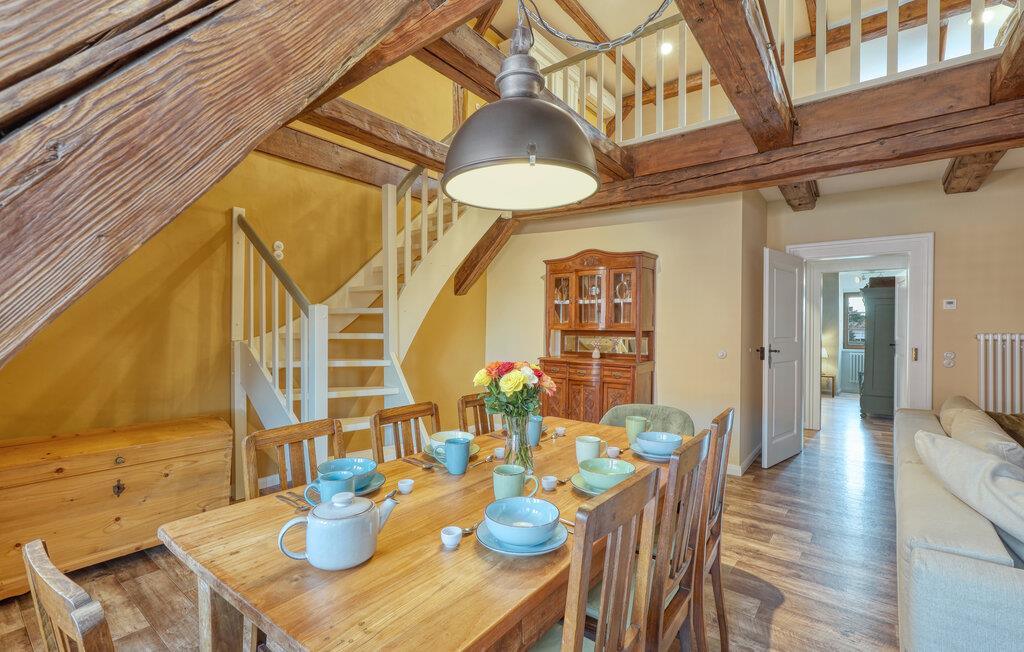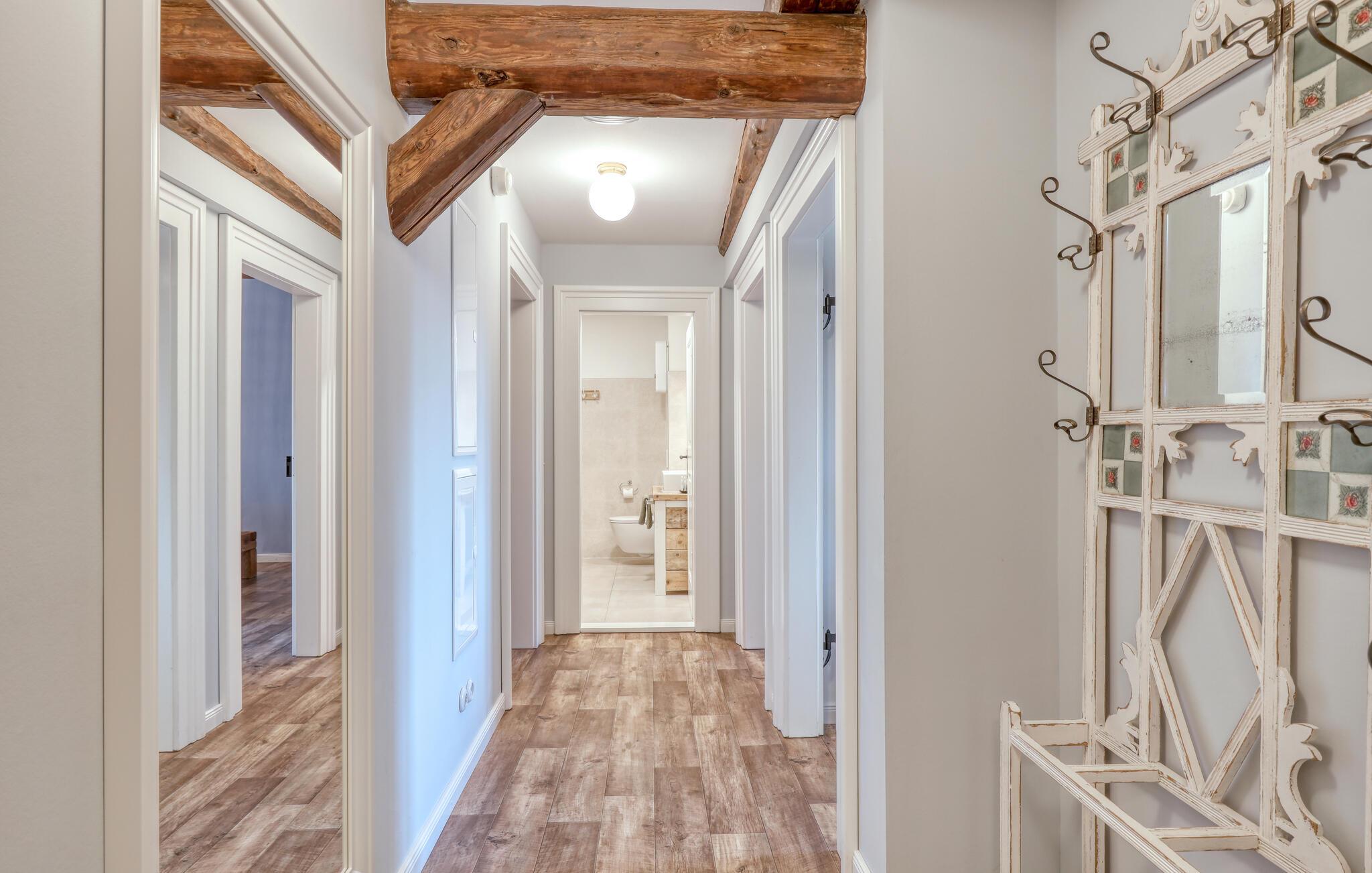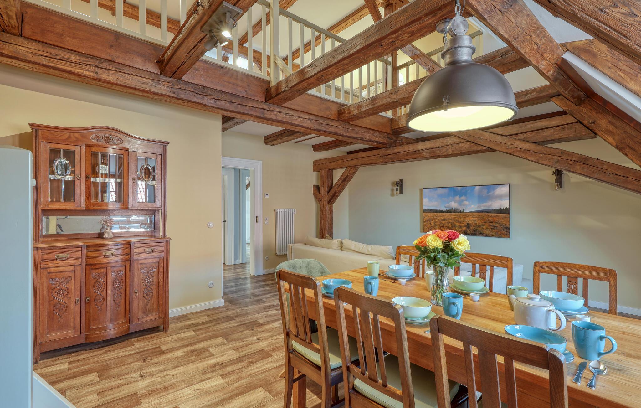 Velkommen til denne skønne lejlighed, som byder sine gæster velkommen med lyse, stilfuldt indrettede værelser i en historisk bygning, hvis lange historie ikke mindst viser sig i de dekorative træbjælker. Føl jer godt tilpas her med dine kære og nyd komforten og den smagfulde atmosfære. Slap af i saunaen, som deles med andre gæster, og hold jer i form selv på ferien med fitnessudstyret. Nyd din første kaffe og et par solstråler på terrassen, inden I begiver jer ud i dine aktiviteter.